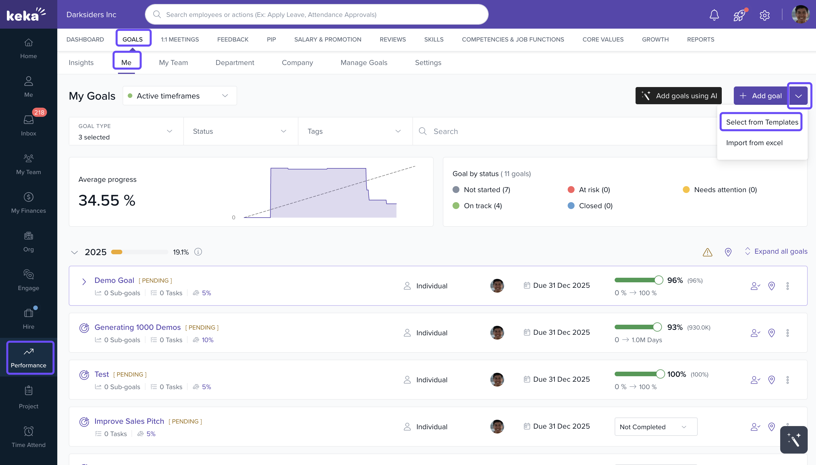 Keka makes it simple to assign multiple structured goals in one go using pre-defined templates. This feature helps save time and ensures consistency across teams, whether you're assigning goals to yourself or your team.