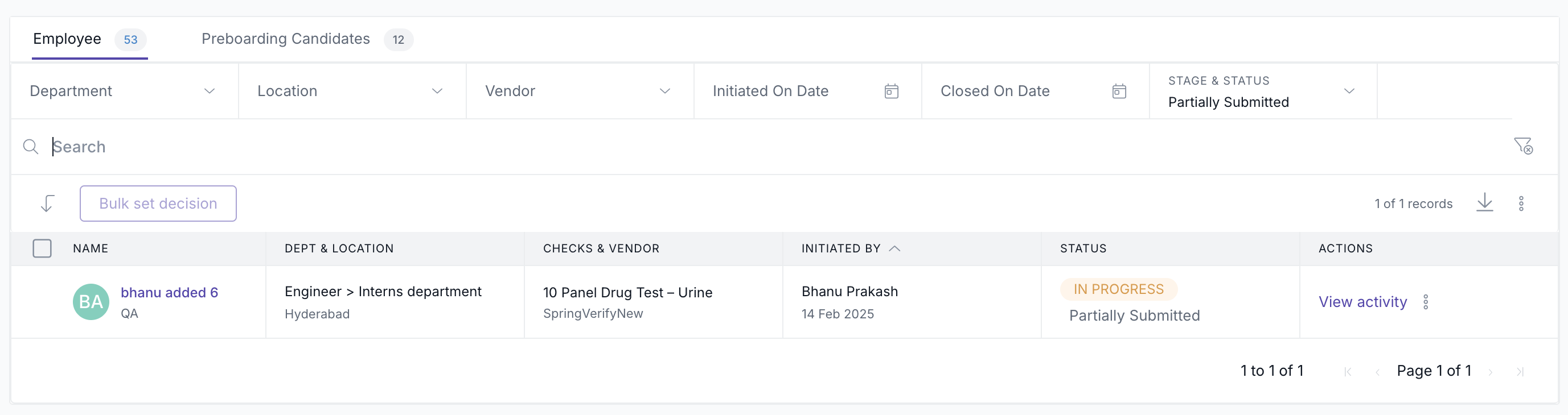 Keka now supports the uploading of partial BGV reports by background verification partners. This new functionality enables partners to provide incremental updates on a candidate's verification status instead of waiting until the full report is ready. As a result, customers can now track the progress of BGV requests more effectively and act faster where needed.