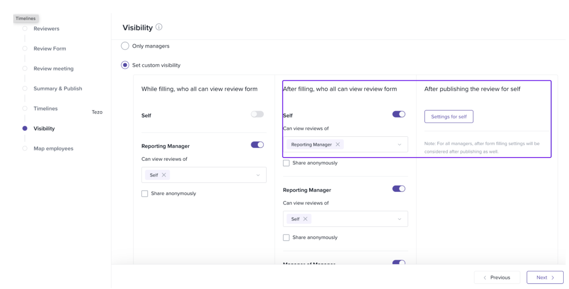 Previously, employees could only view their review forms after the entire review cycle was published. Now, a new configuration allows admins to choose between: