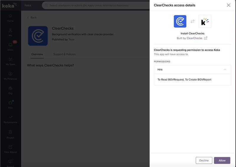To install ClearChecks from the Keka App Store: