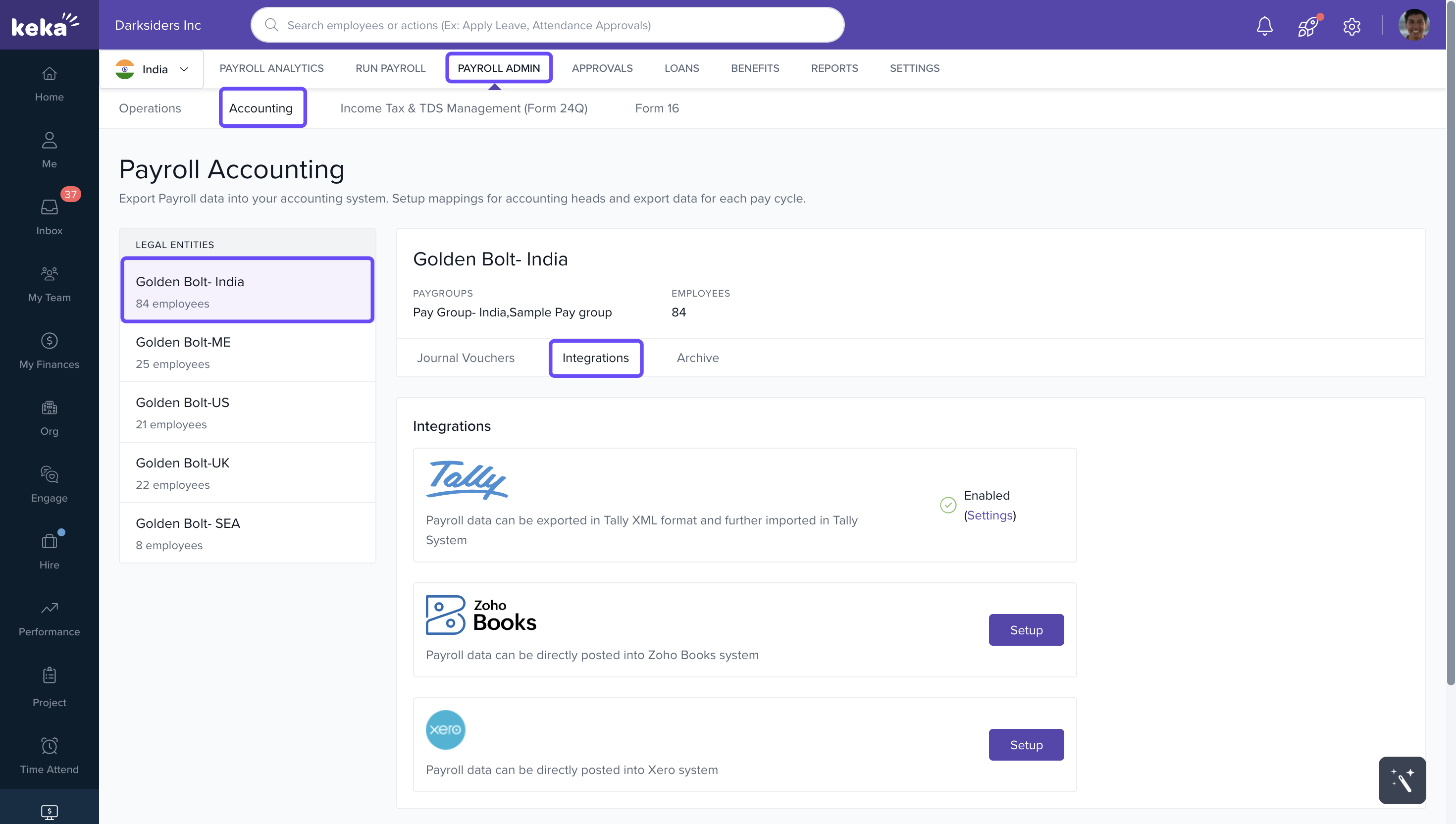1. Go to Payroll Admin → Accounting → Integrations