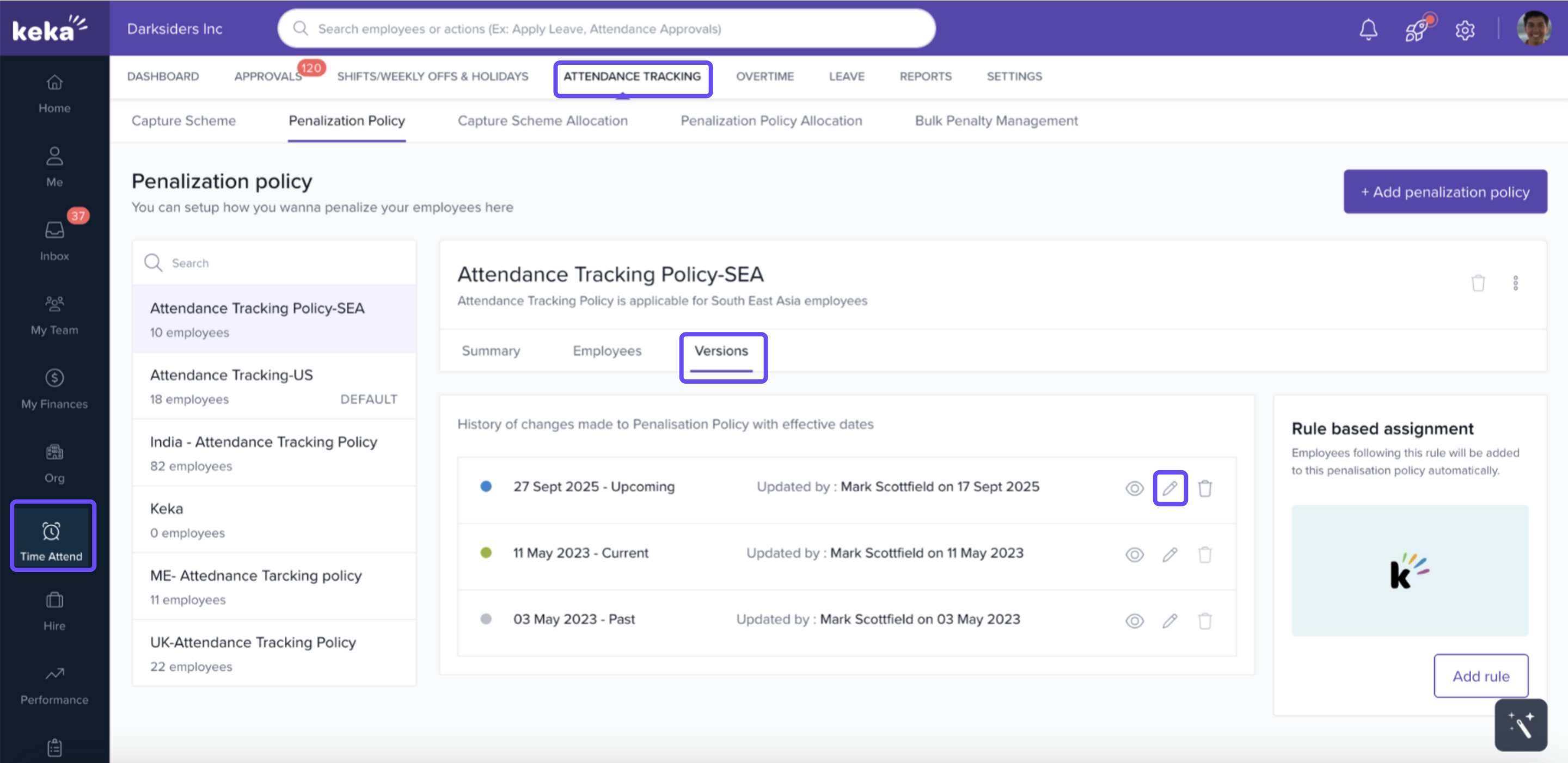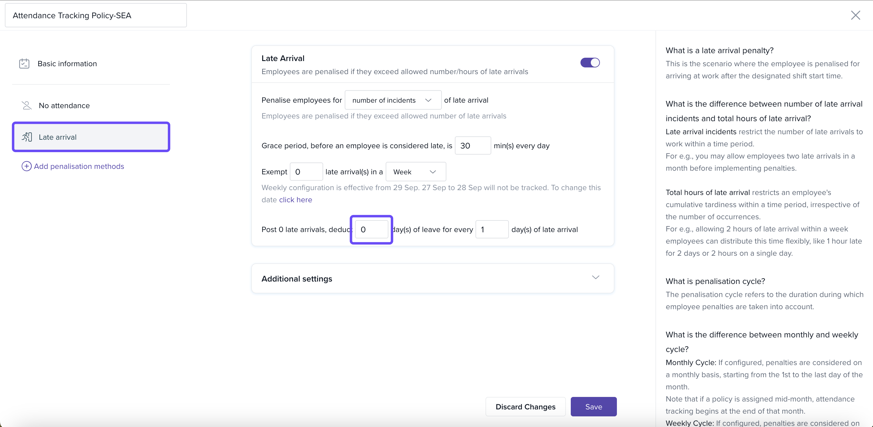 Go to Time & Attendance → Attendance Tracking → Penalization Policy