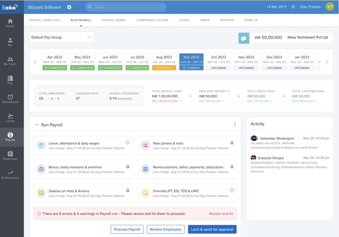 “There were 6 errors & 5 warnings in Payroll. Please review and fix them to proceed with locking payroll.”