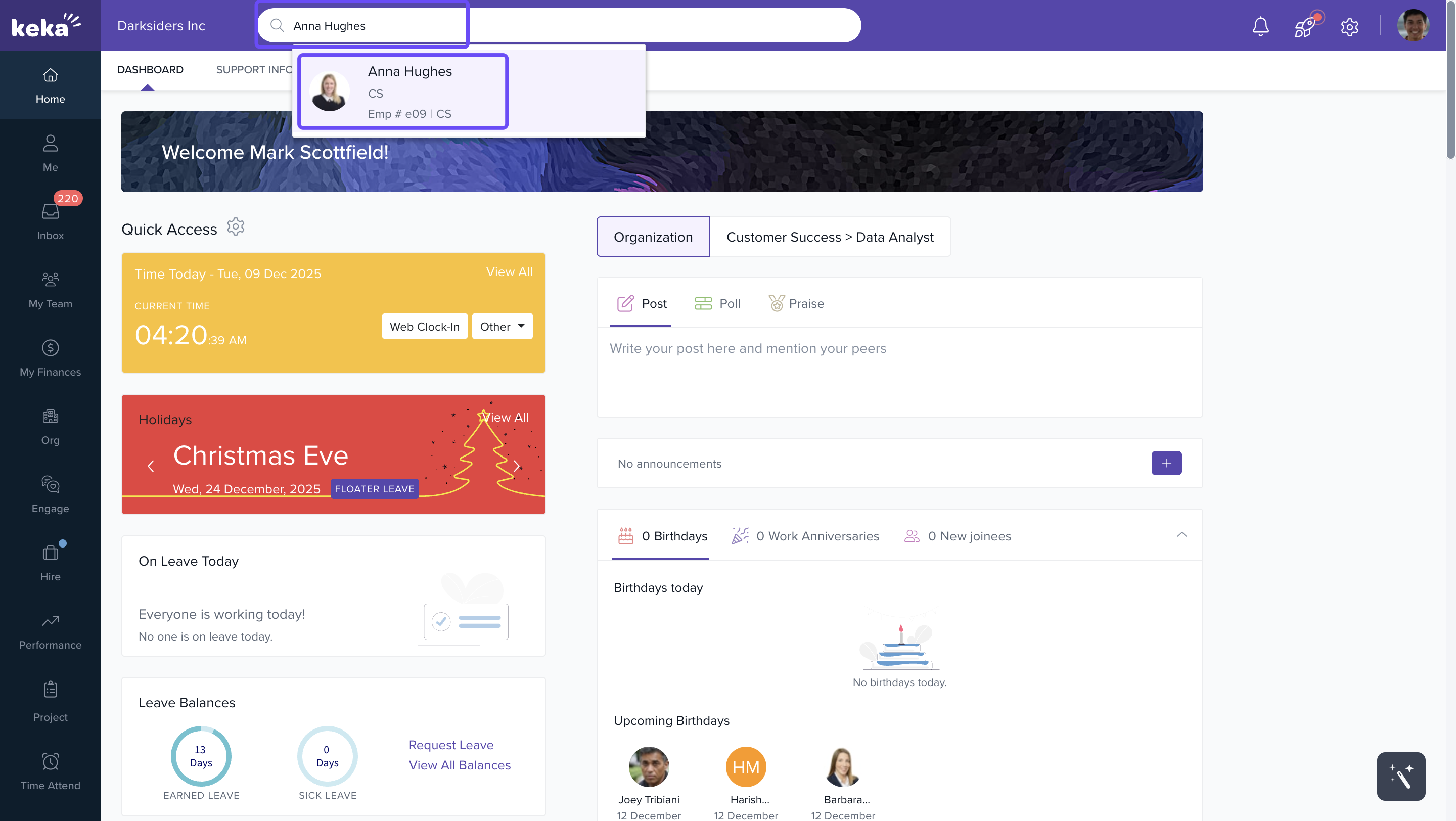 Use the search bar to find the relevant employee profile.