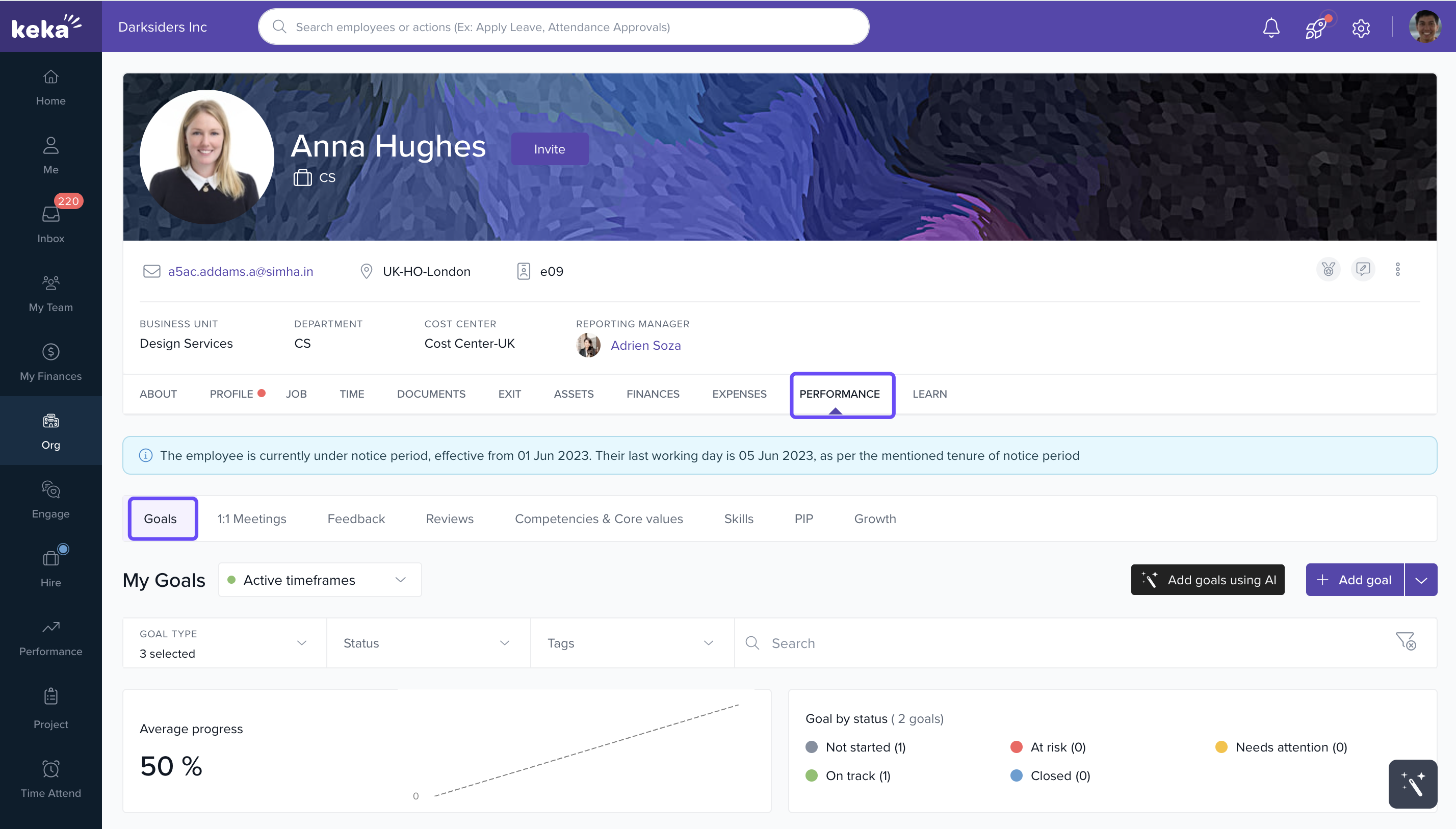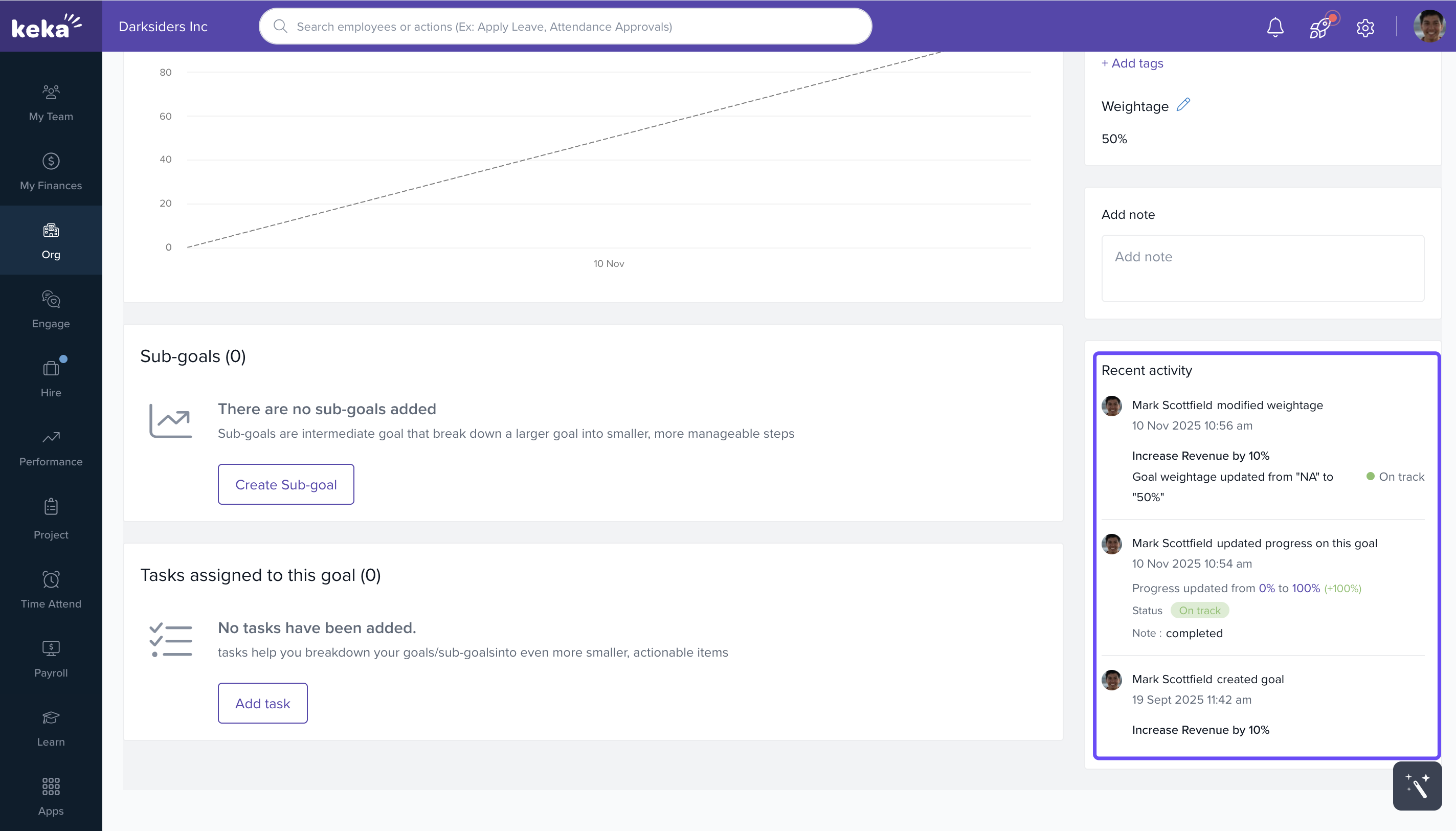 Once the progress on an employee's objective is updated, employees can add comments to notify the performance admin. These comments serve as a basis for the progress update and are easily accessible within the employee profile.