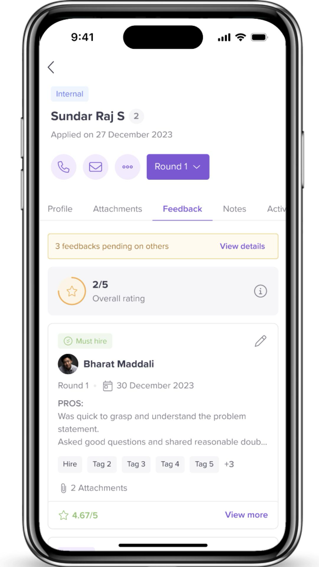 In today's fast-paced recruitment environment, it's essential for hiring managers and recruiters to have quick and efficient access to candidate profiles, even when on the move. The Keka Mobile App offers a user-friendly interface that enables seamless management of candidate profiles, providing access to important candidate information and facilitating actions such as reviewing resumes, transitioning candidates through recruitment stages, and collecting feedback from the hiring team.
