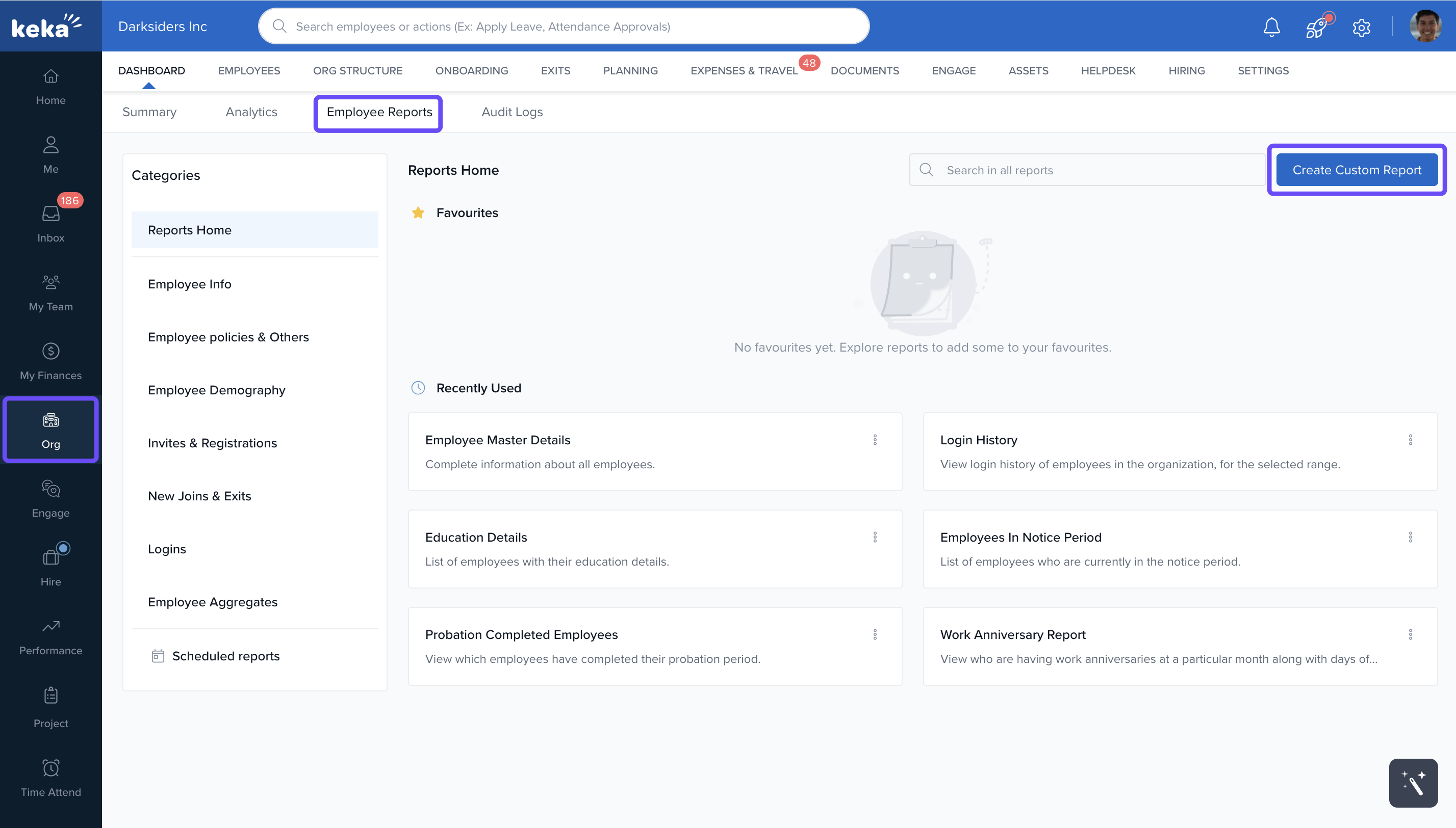 - Go to Org > Dashboard > Employee Reports, and click on Create Custom Report at the top-right corner.