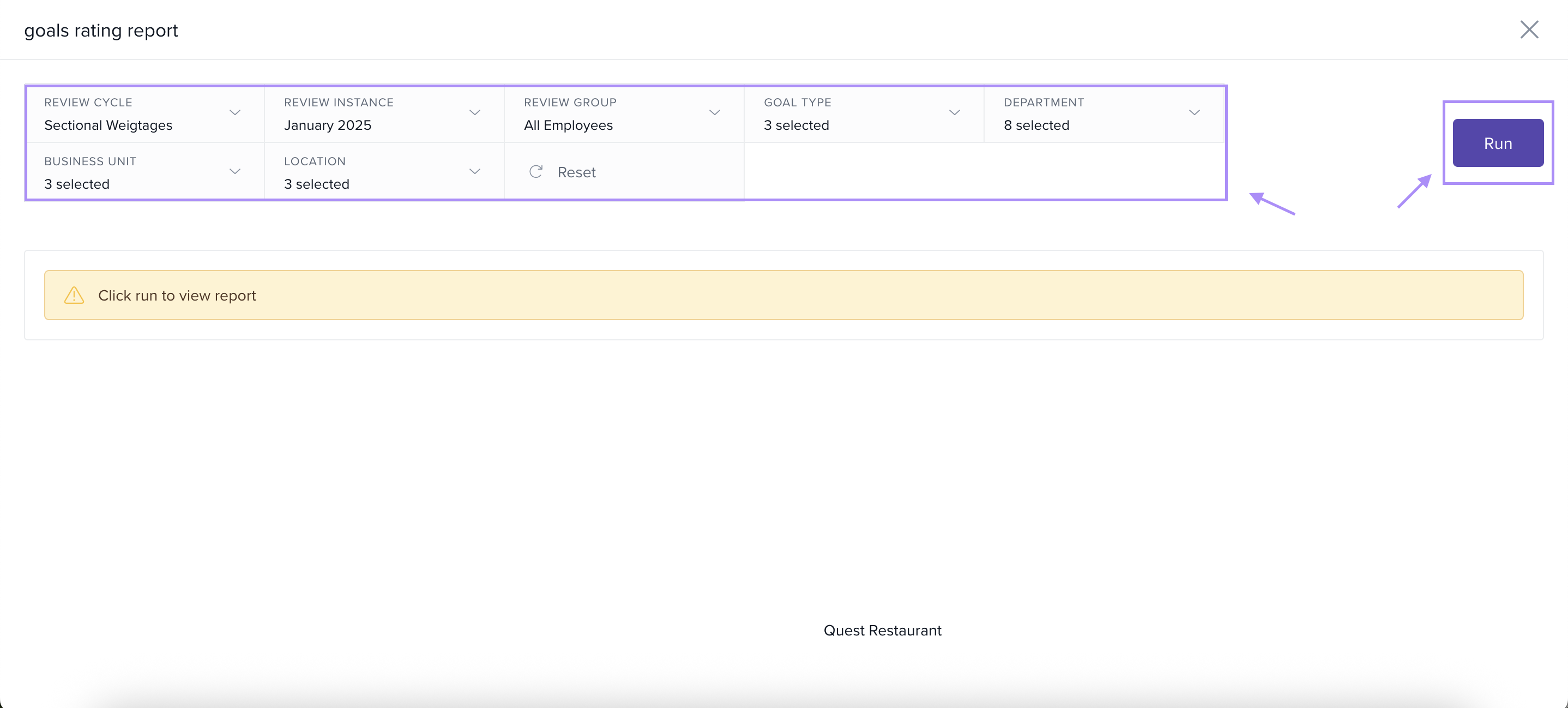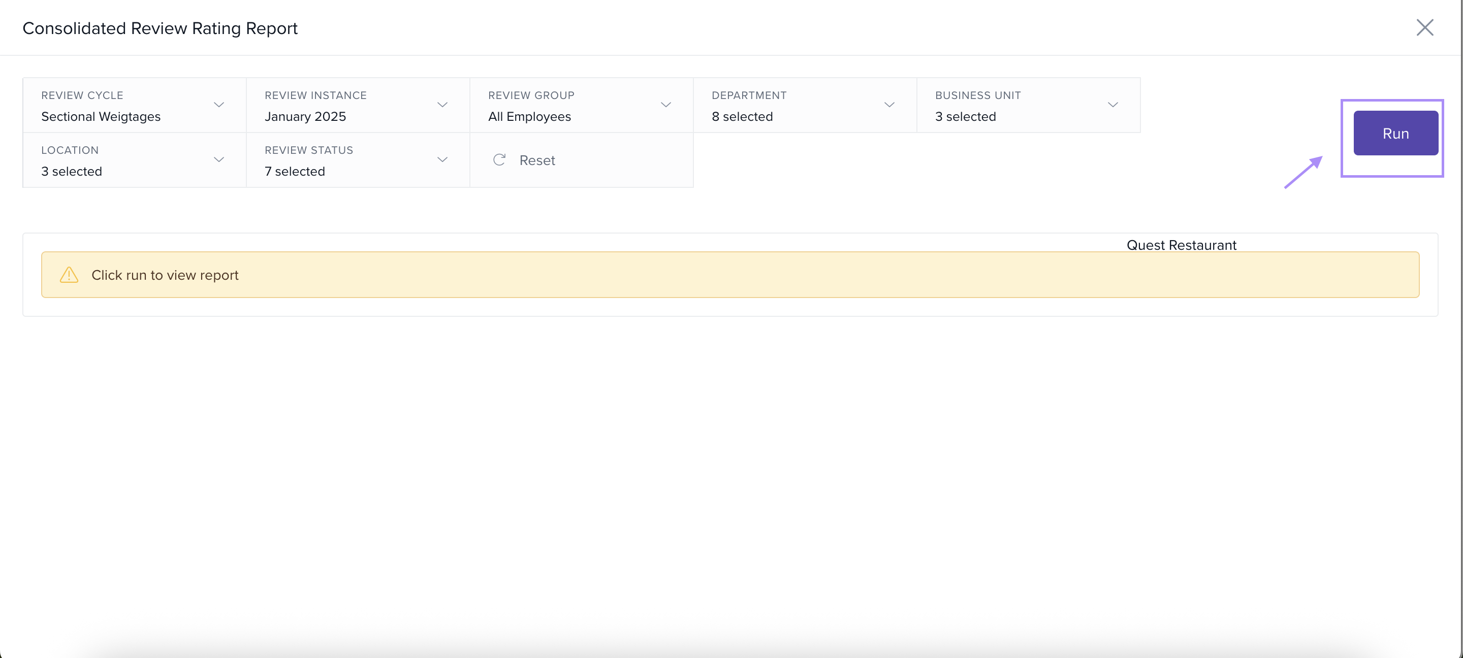 After selecting the filters, click Run to generate the report.