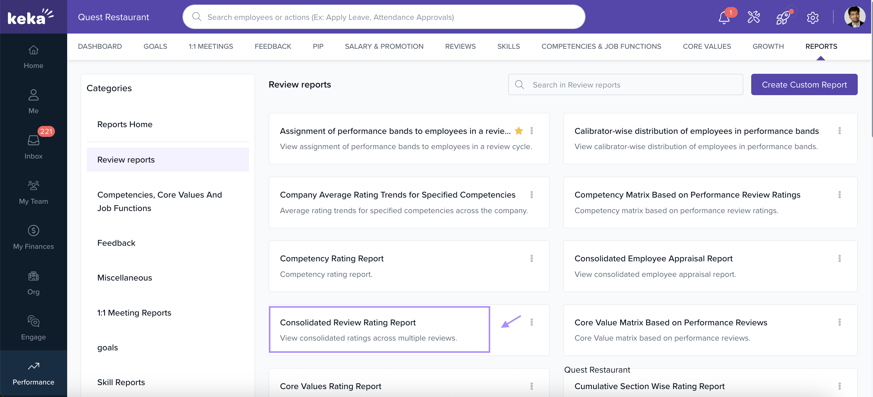 The Consolidated Review Rating Report is ideal for a holistic view of employee performance.