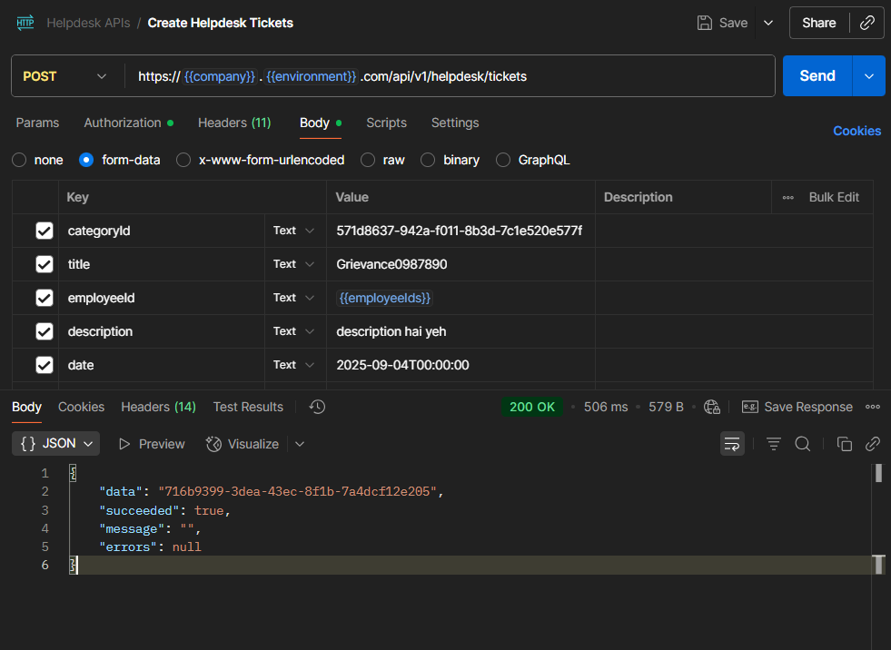 Keka’s Helpdesk API provides a convenient and efficient method for managing support tickets and categories, helping your team optimize ticket handling. With this API, you can easily retrieve helpdesk categories, create new tickets, and get a complete list of existing tickets.