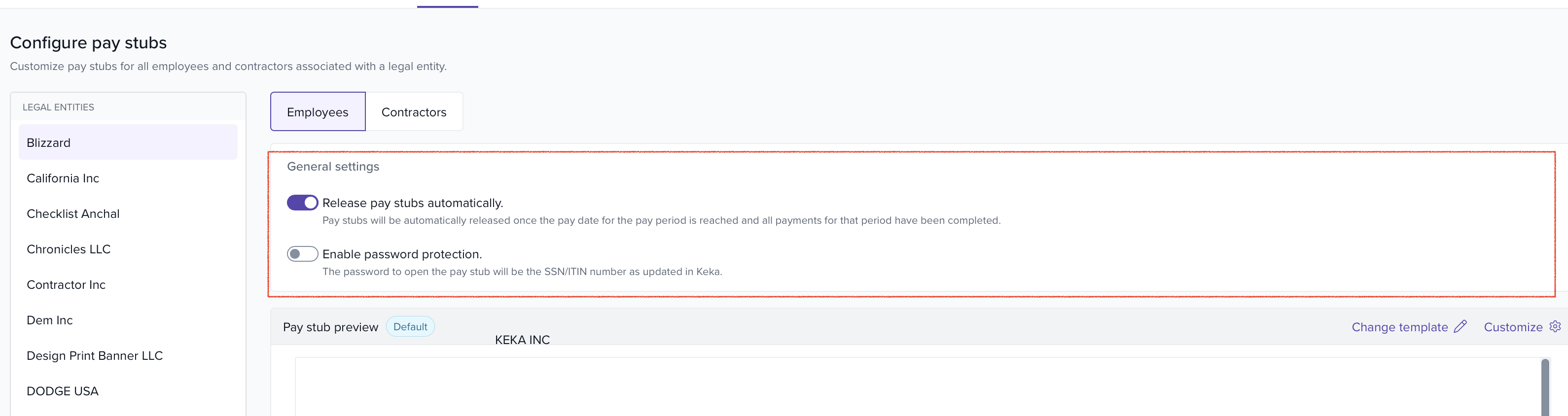 Configure pay stub settings per Legal Entity, with the option to copy configurations across entities.