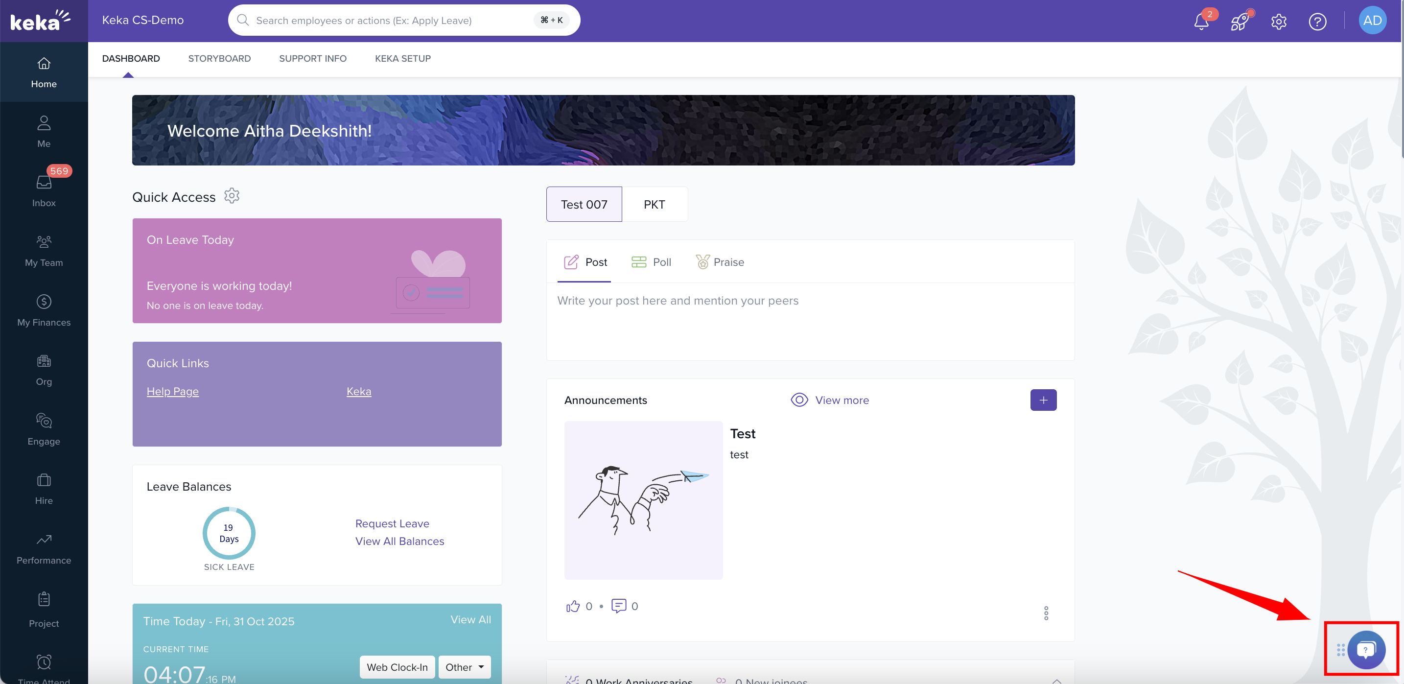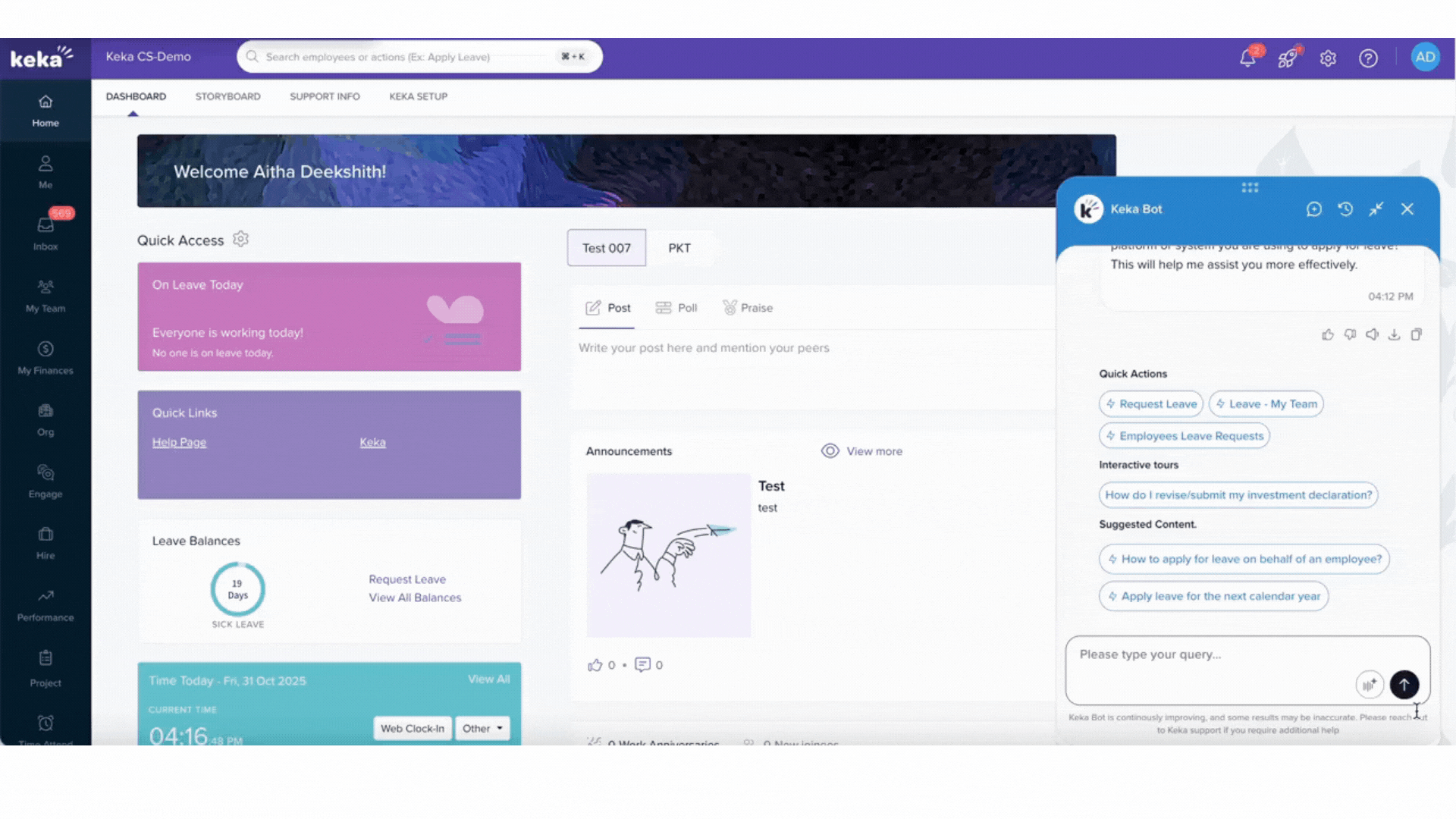 Or you can access the Keka Chat Bot anytime from the bottom-right