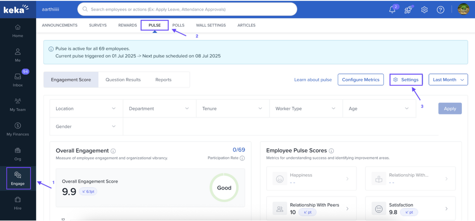 Navigate to Engage and click on Pulse. Under Pulse, select Settings.