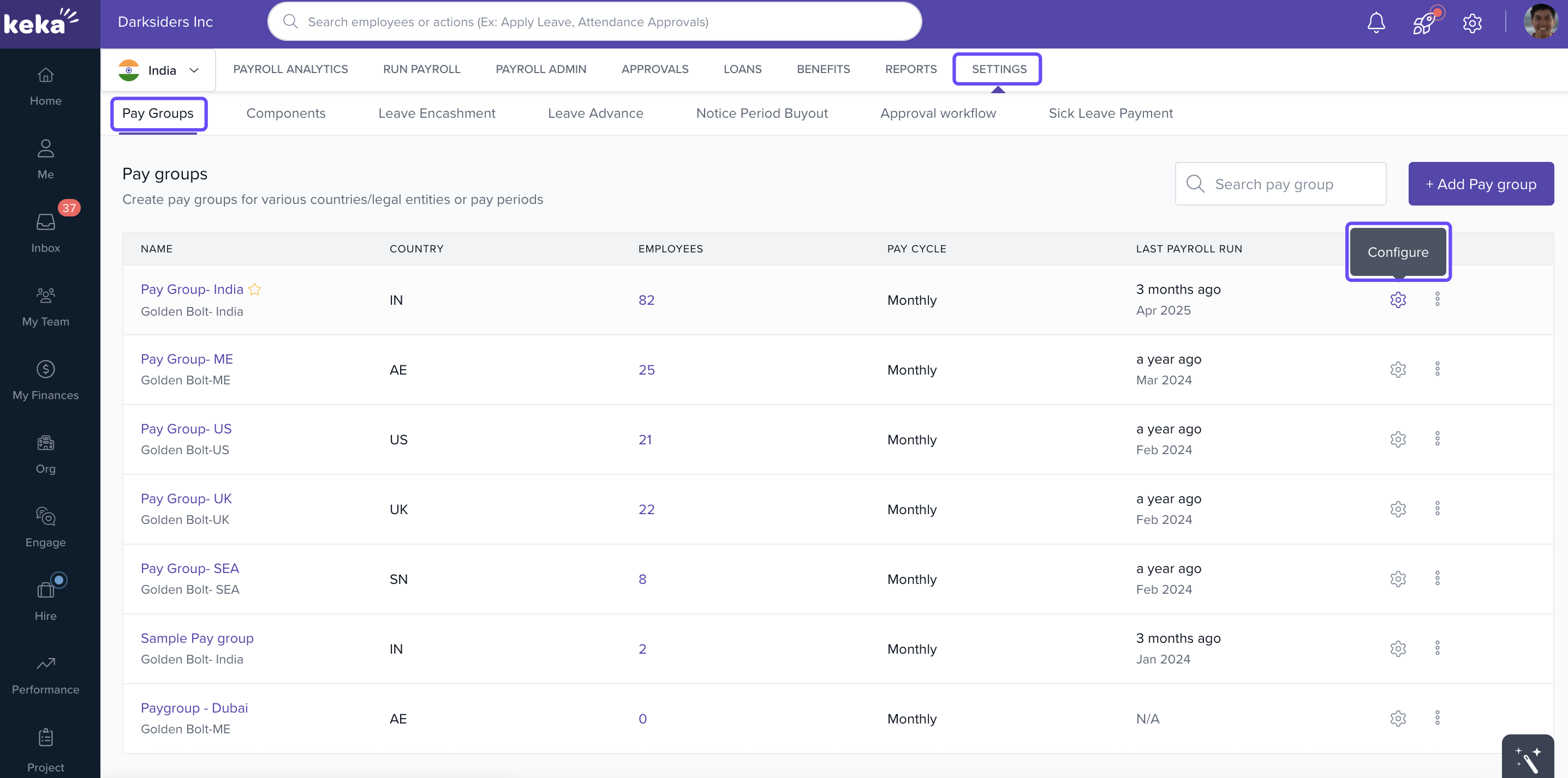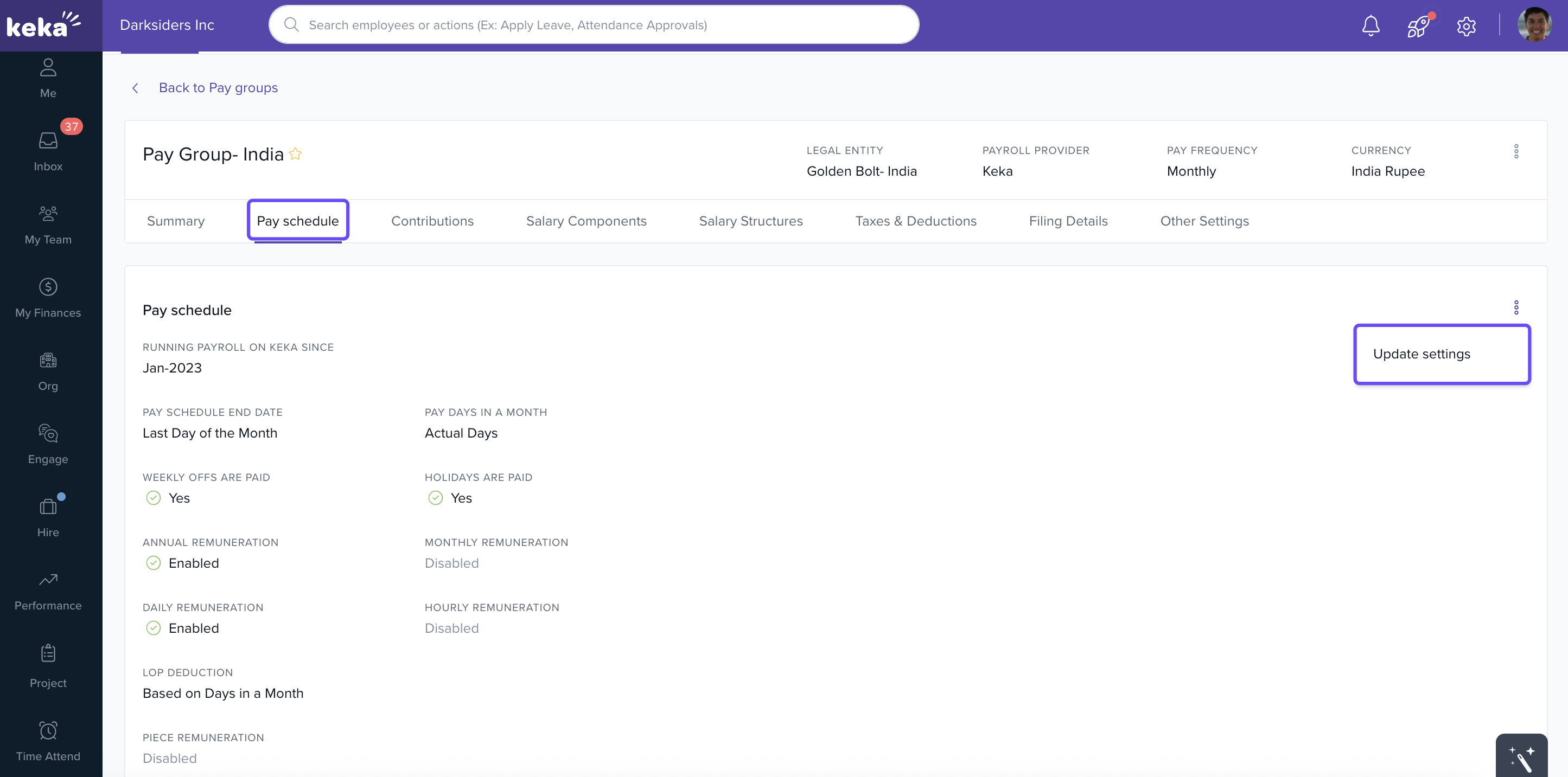 Only users with Admin or Payroll Owner roles who have access to Pay Groups, Payroll Settings, and Employee Compensation can set up and manage Piece-Based Remuneration in Keka.