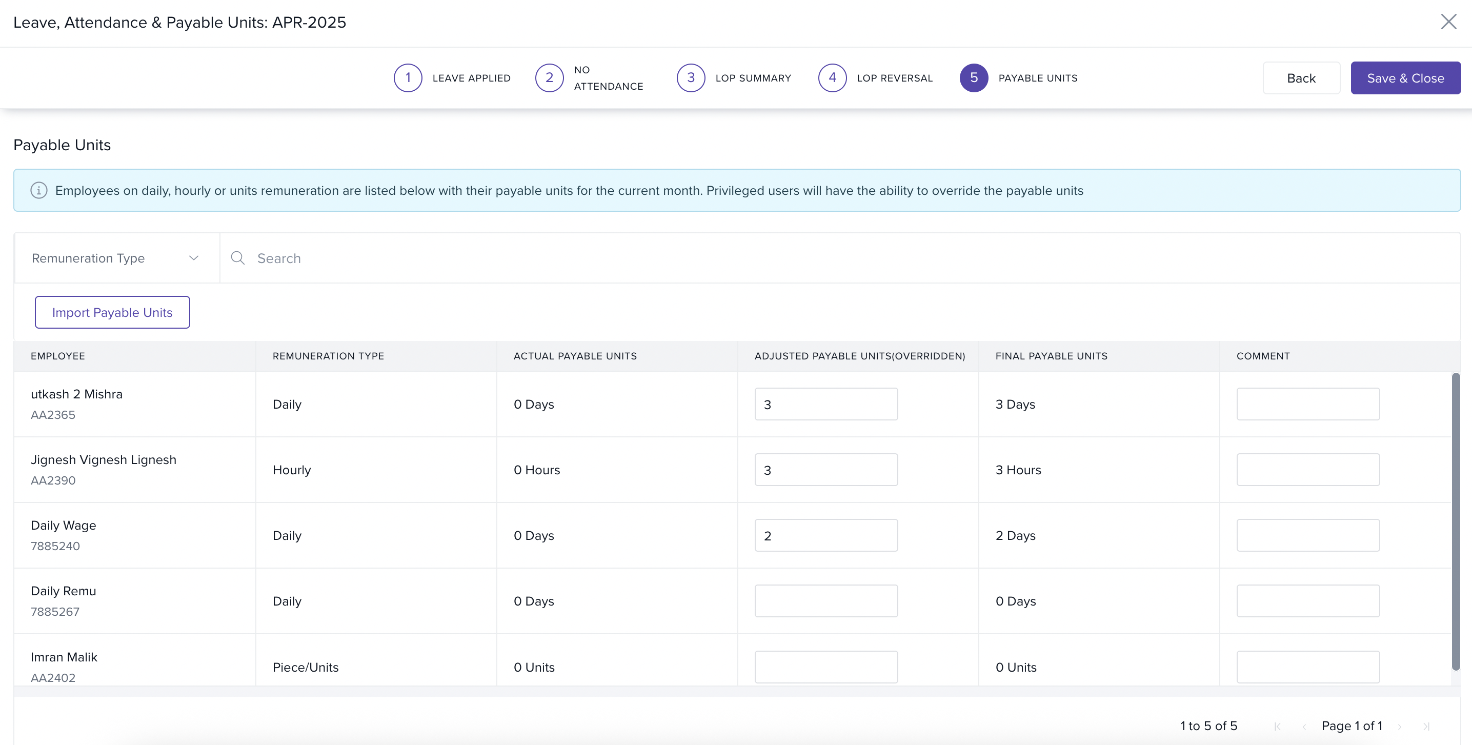 - Adjust their payable units as needed and click Save to apply the changes.