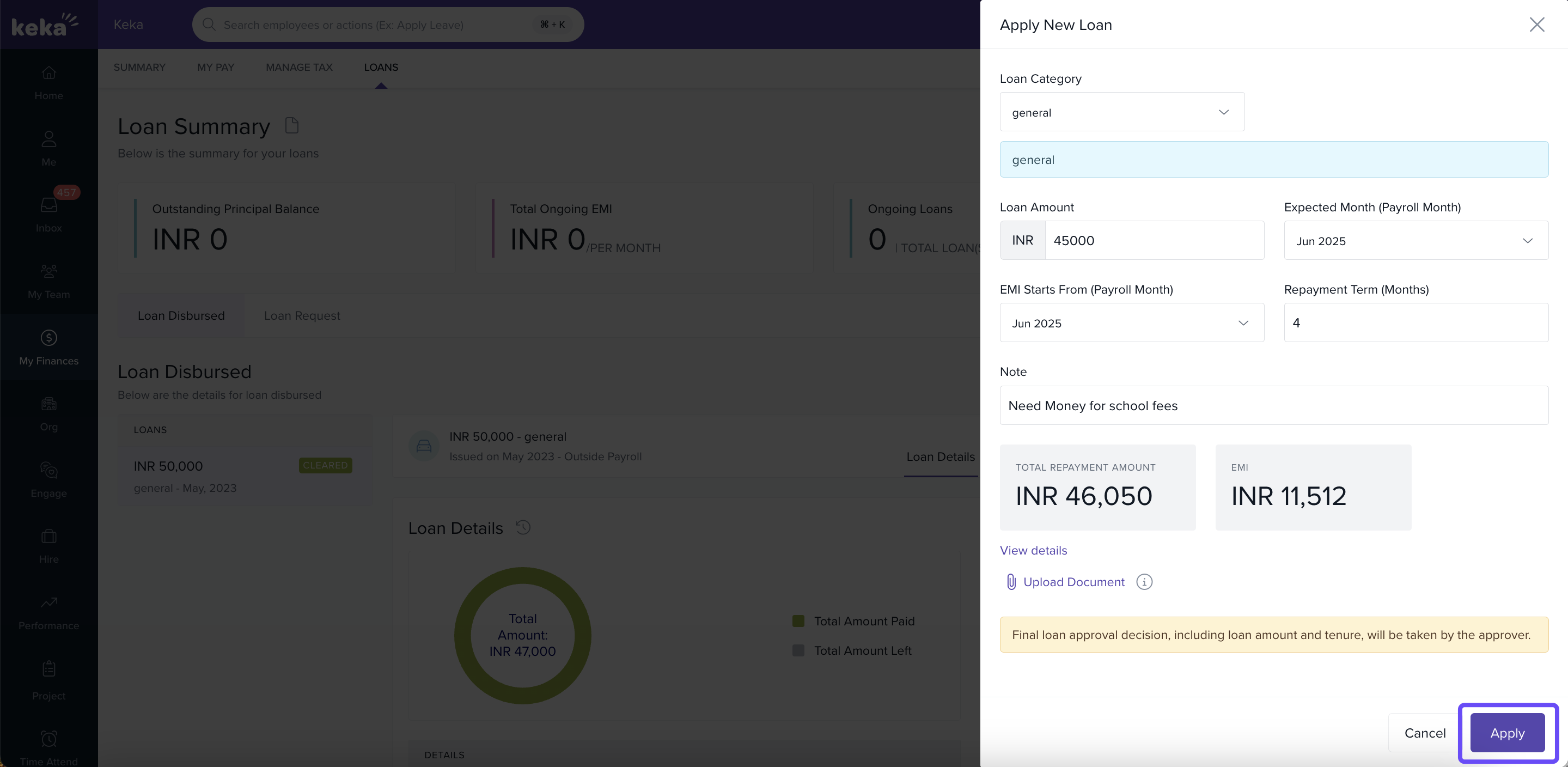 Applying for a loan through Keka is designed to be straightforward: select your category, enter loan details, upload documents for verification, and submit. Monitoring the request afterward ensures you stay updated on its status. Always follow your organization’s policy, and reach out to HR or Finance if anything in the process is unclear.