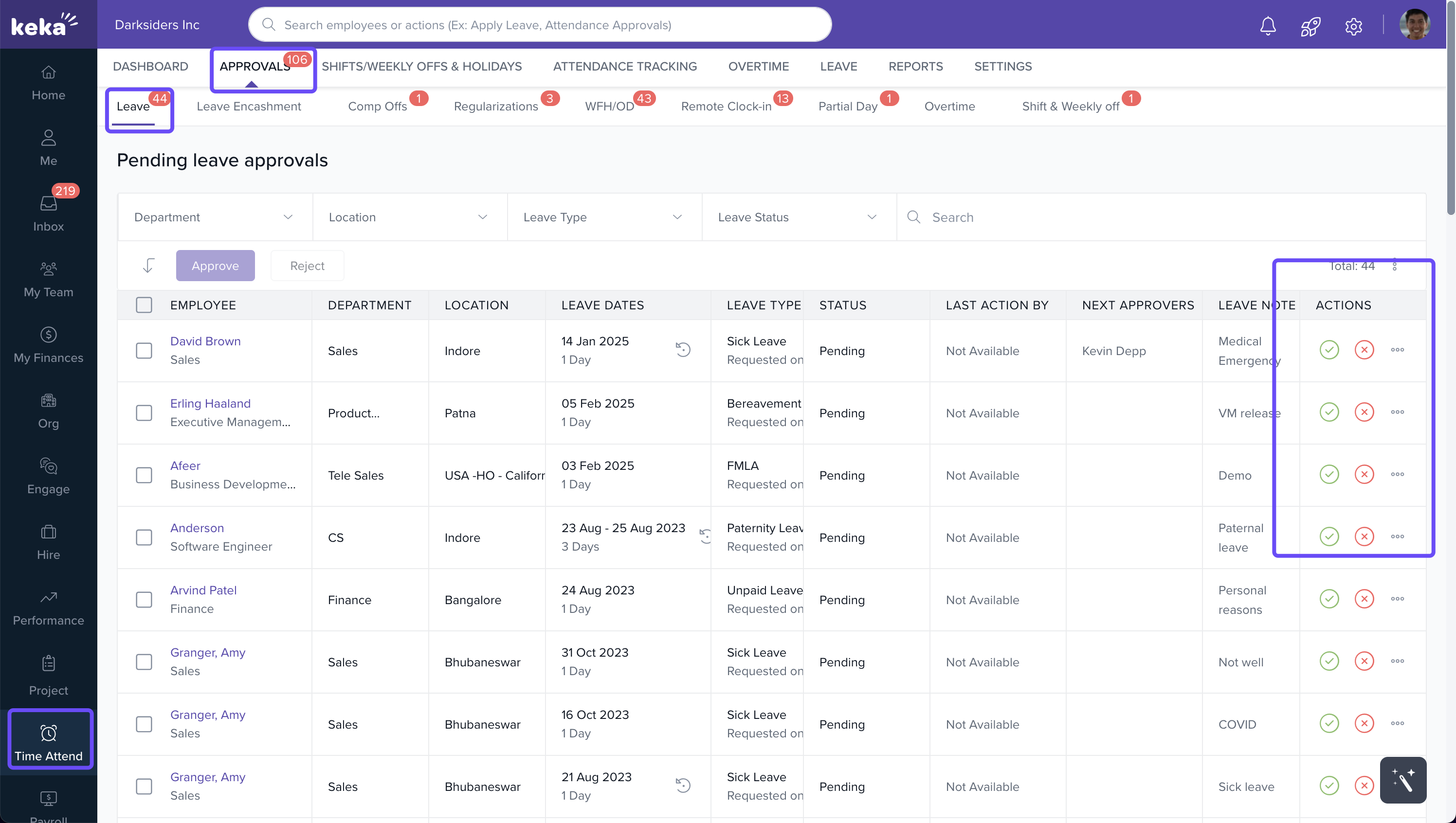 This guide is for admins who need to review, manage, and act on leave, work-from-home (WFH), and similar requests using the Time Attend section in Keka.