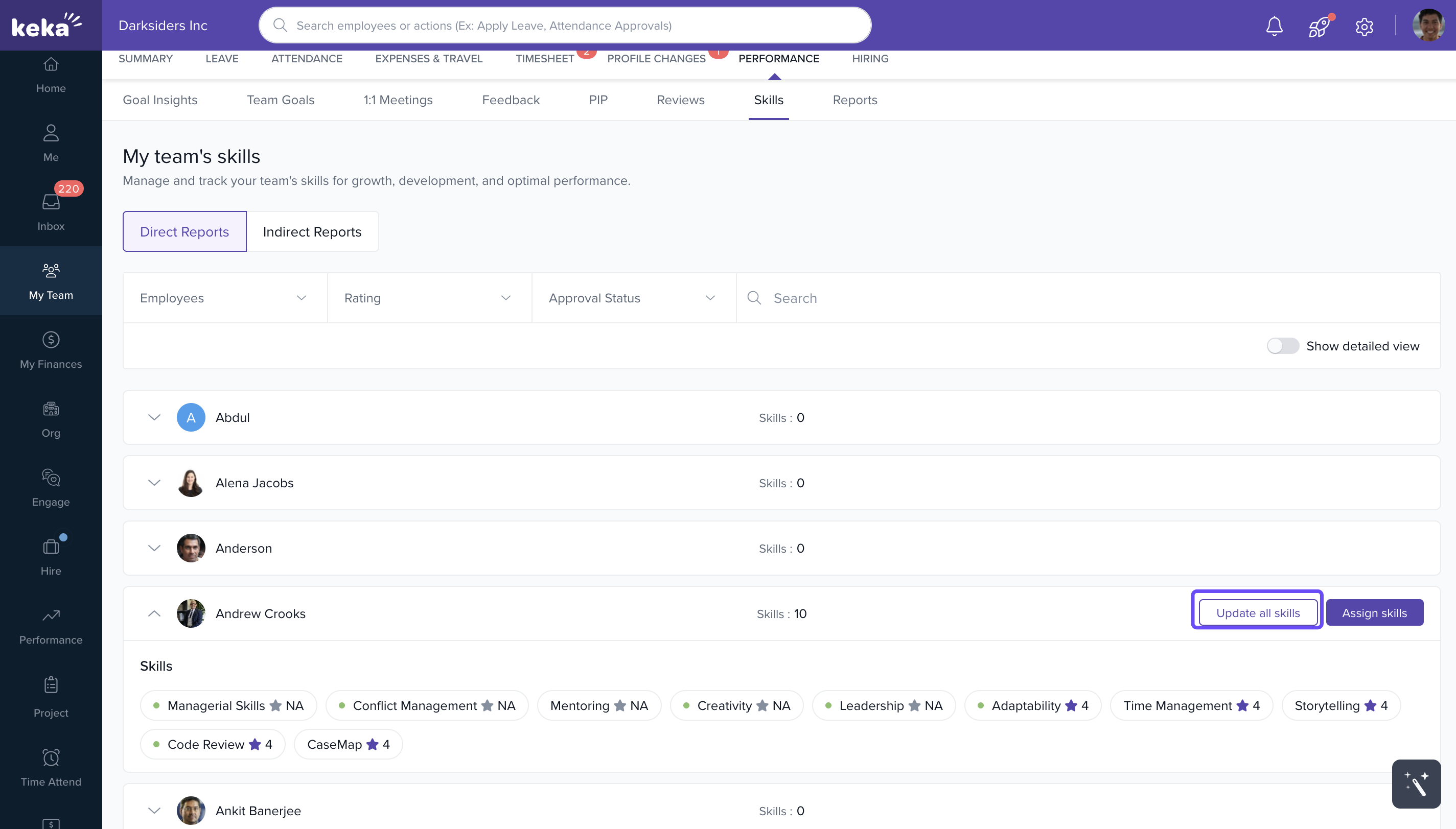 As a reporting manager on Keka, you have the ability to manage and update skills for your direct and indirect reports. This guide provides step-by-step instructions on how to effectively use the skills management features in Keka for your team.