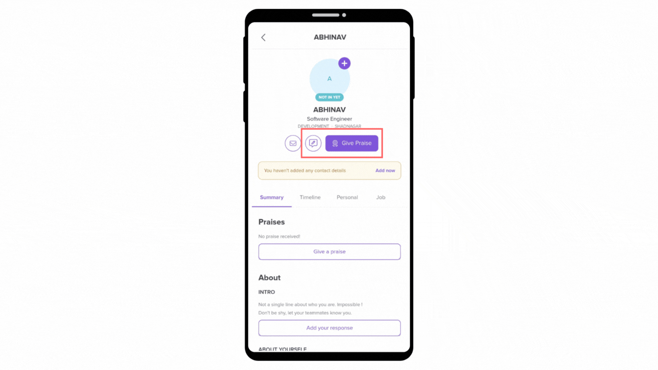 Providing feedback and praise is equally straightforward. Just head to the employee's profile, and you can offer your insights and appreciation with ease.