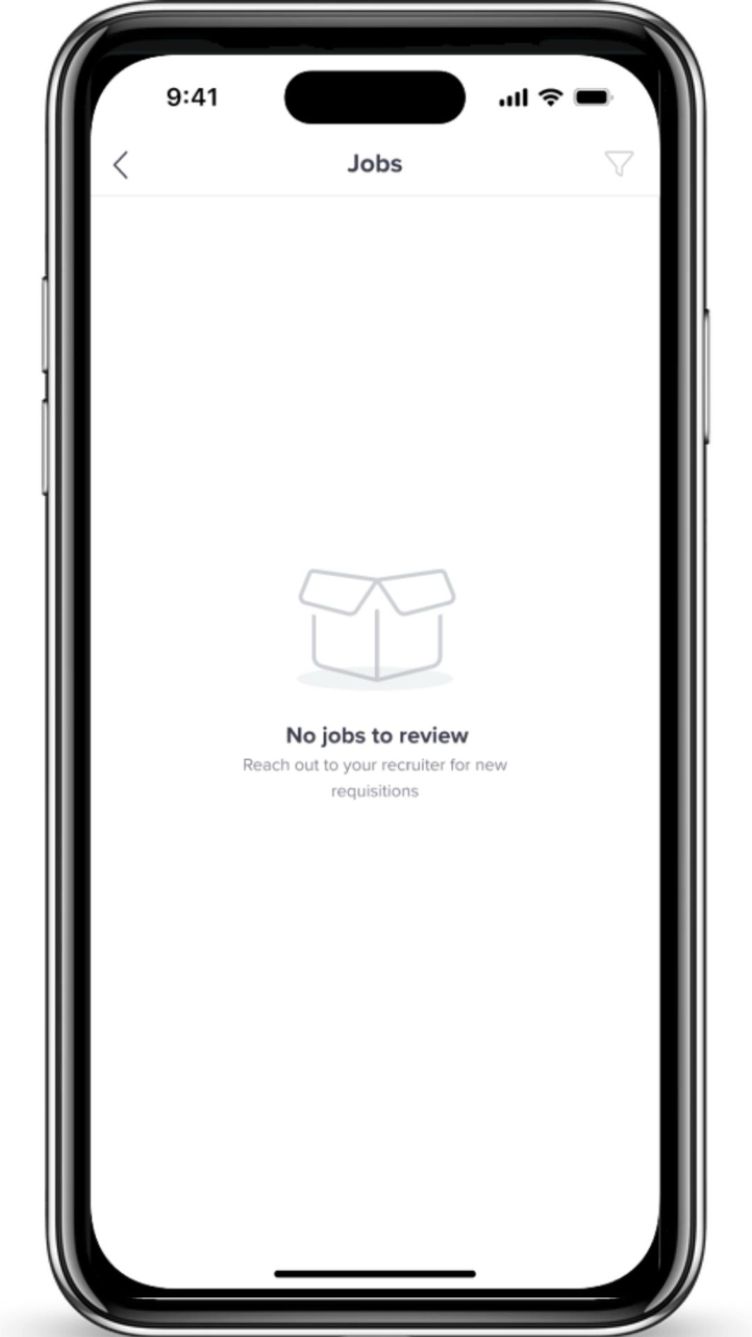 - If no jobs are currently linked to your profile, you will encounter a No jobs to review screen, prompting you to reach out to your recruiter for new requisitions.