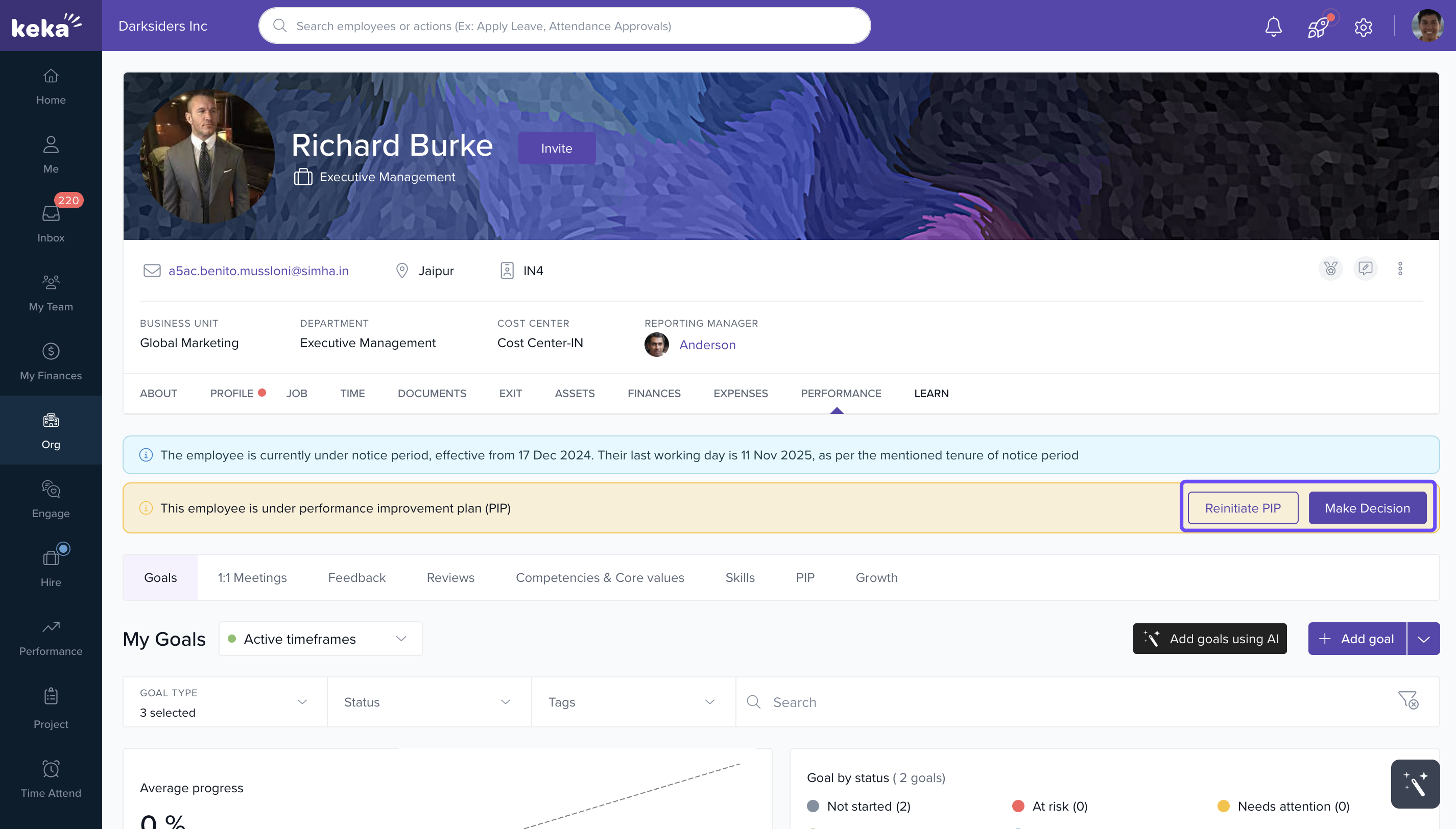 With PIP actions available directly from the employee profile, Keka brings convenience and efficiency to every step of the performance improvement process.