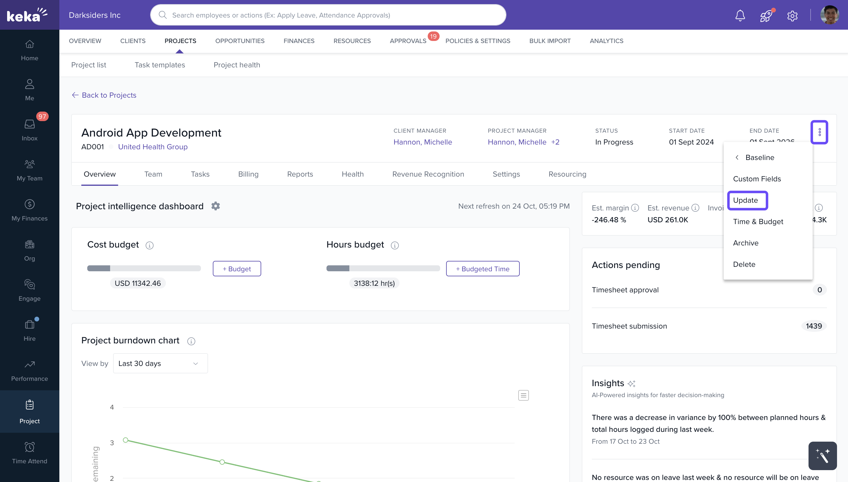 Access to the Projects section in Keka PSA.