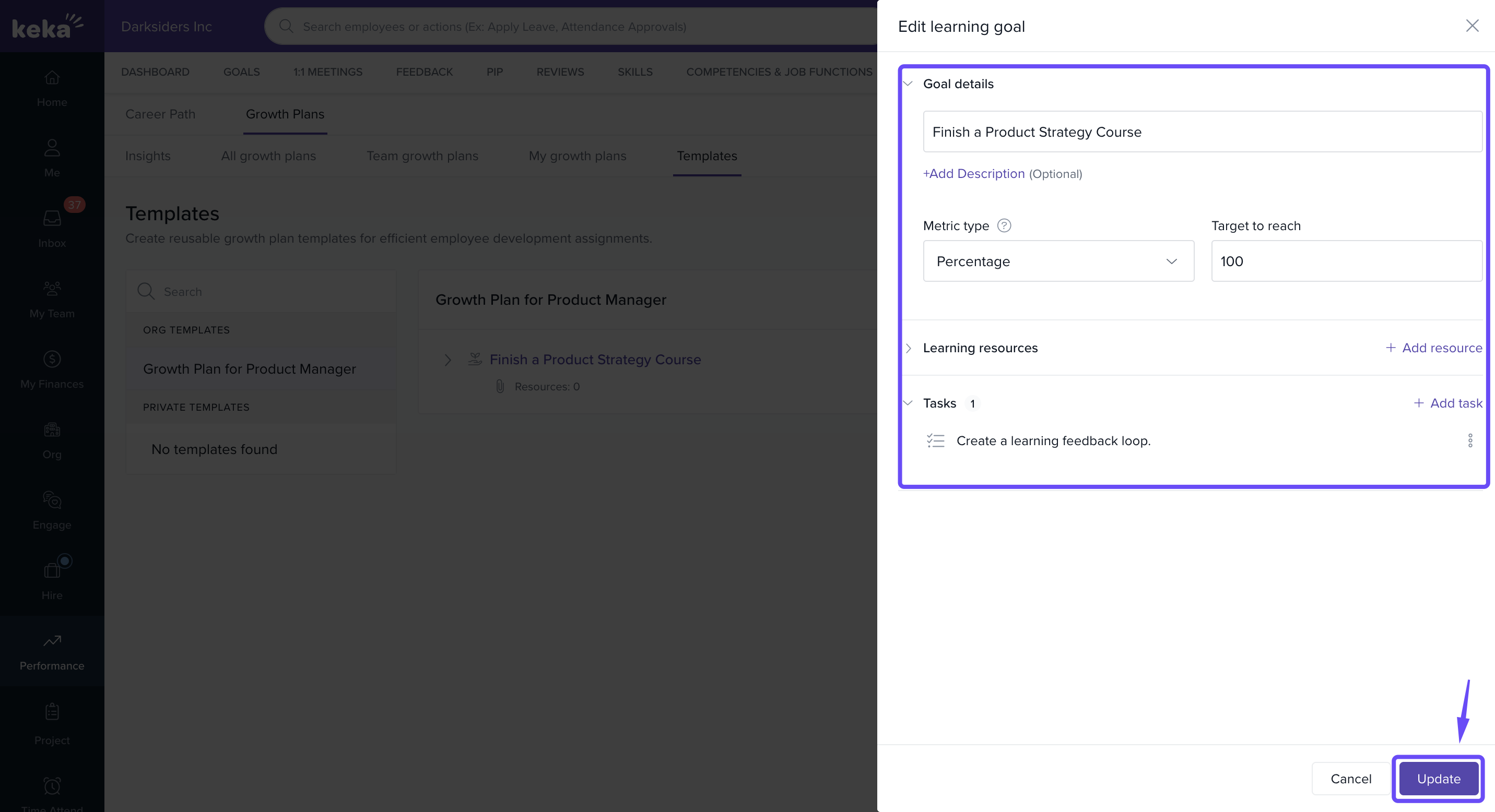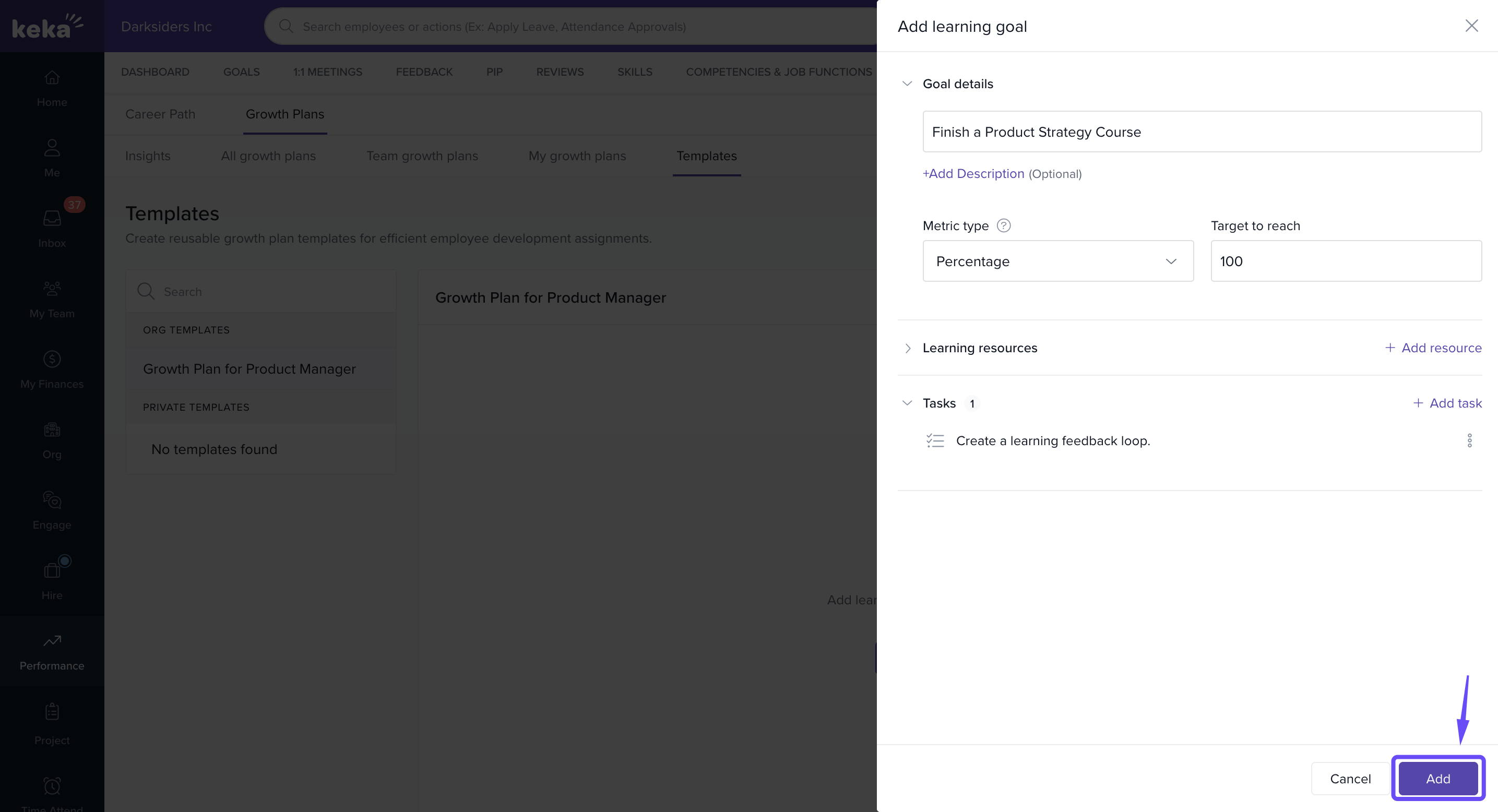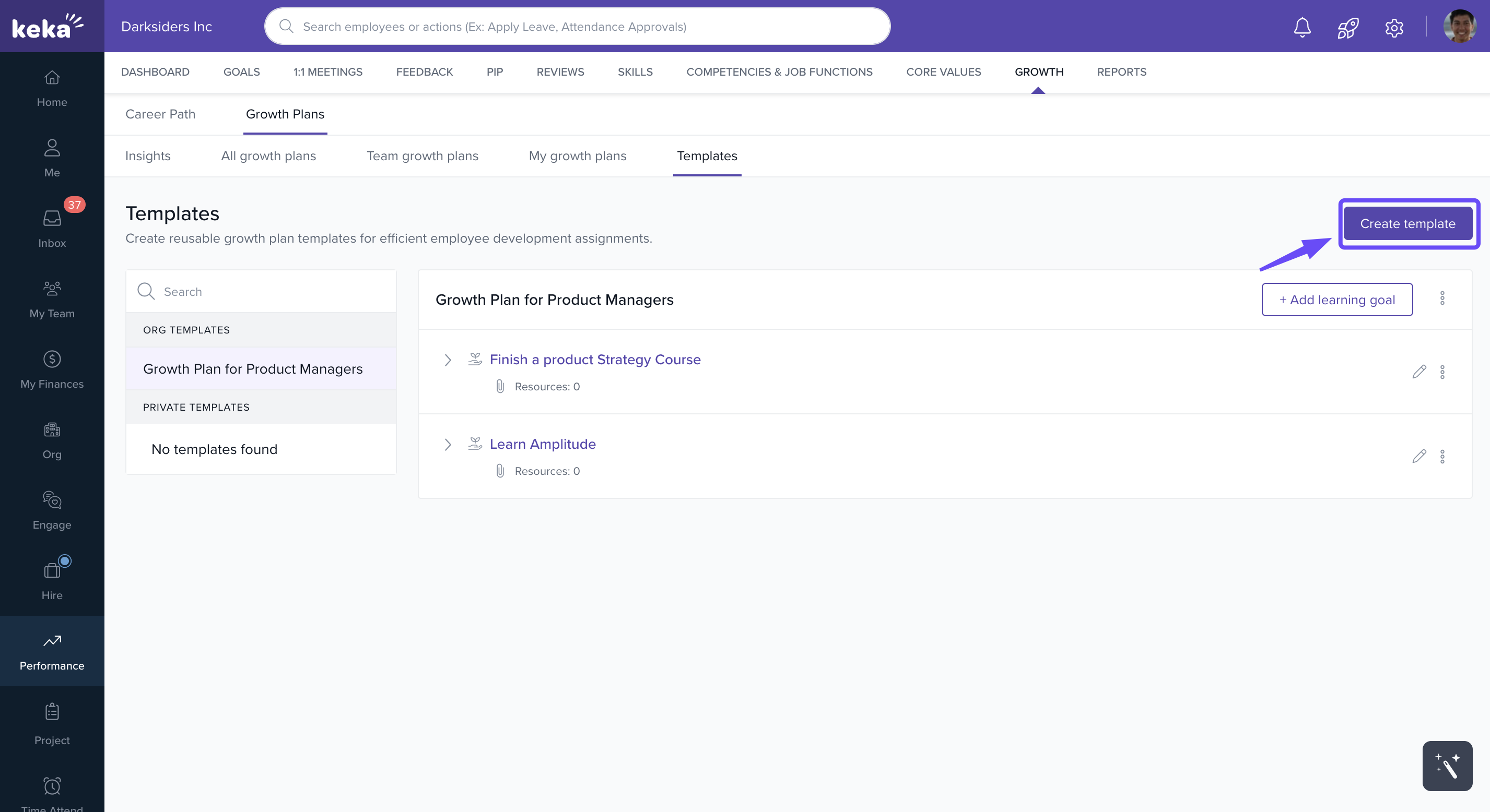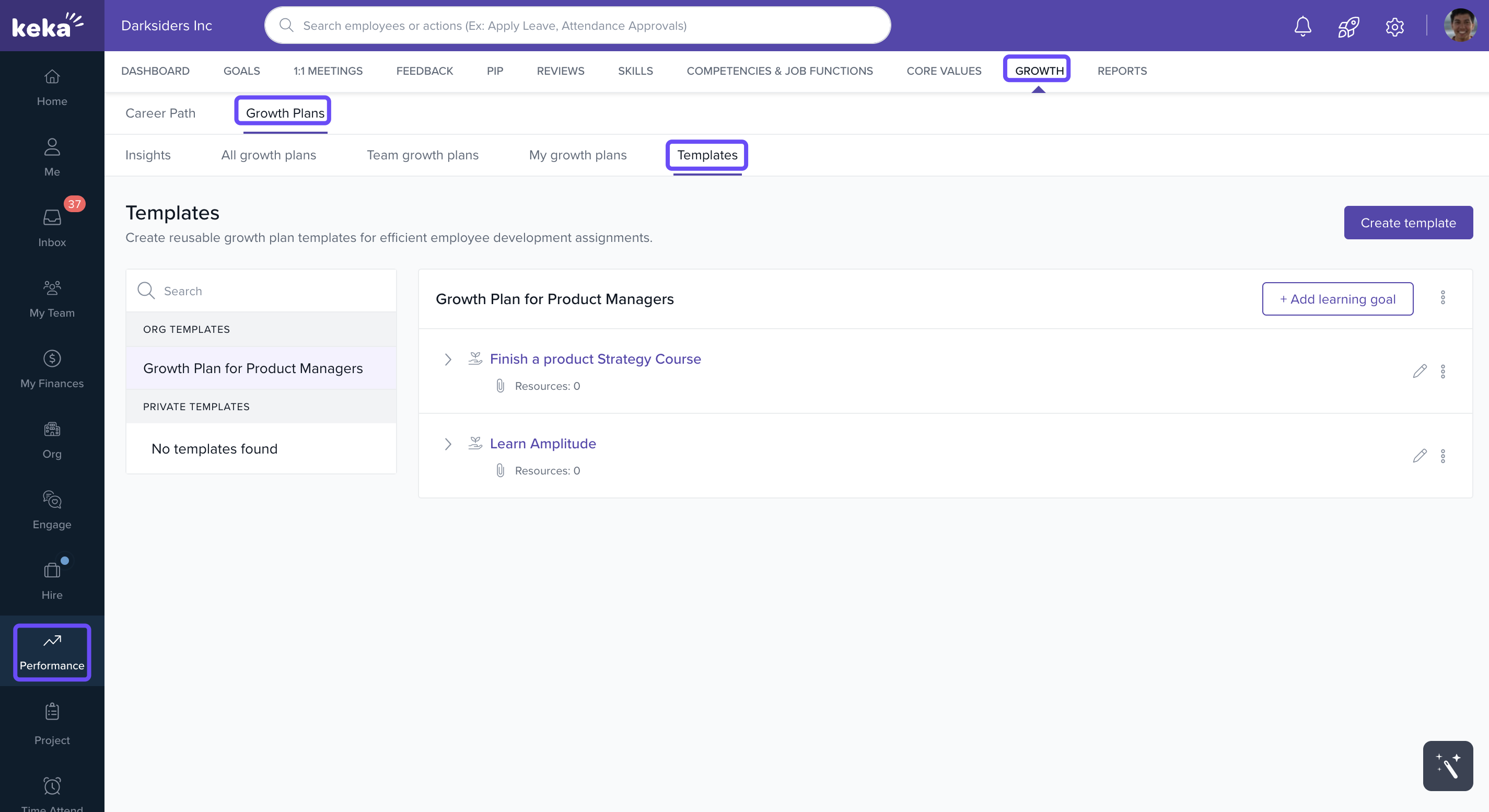 Use Growth Plan Templates in Keka to build structured, repeatable learning paths for employees. These templates help managers assign consistent goals, save time, and align development efforts with organisational priorities.