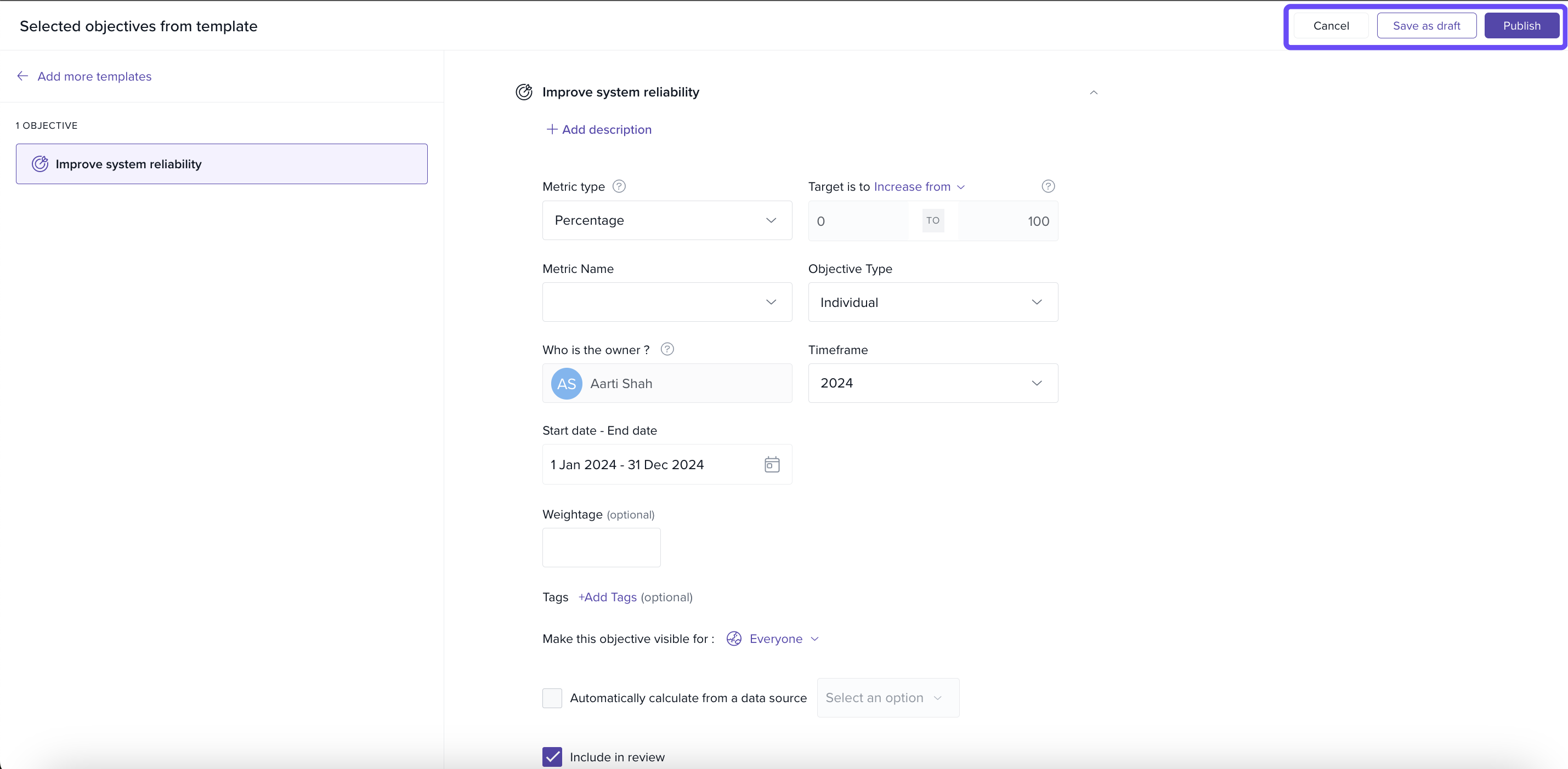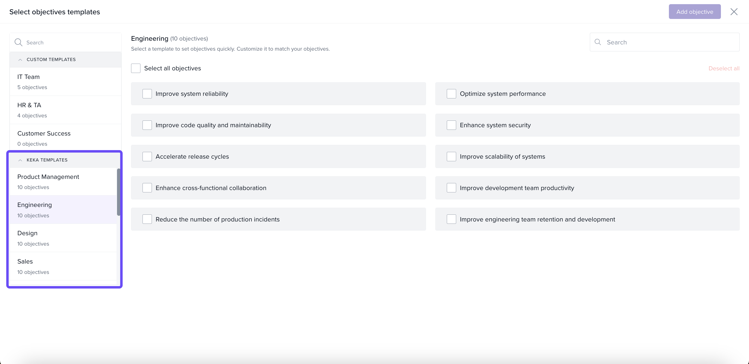 Add objectives (from scratch or using templates)