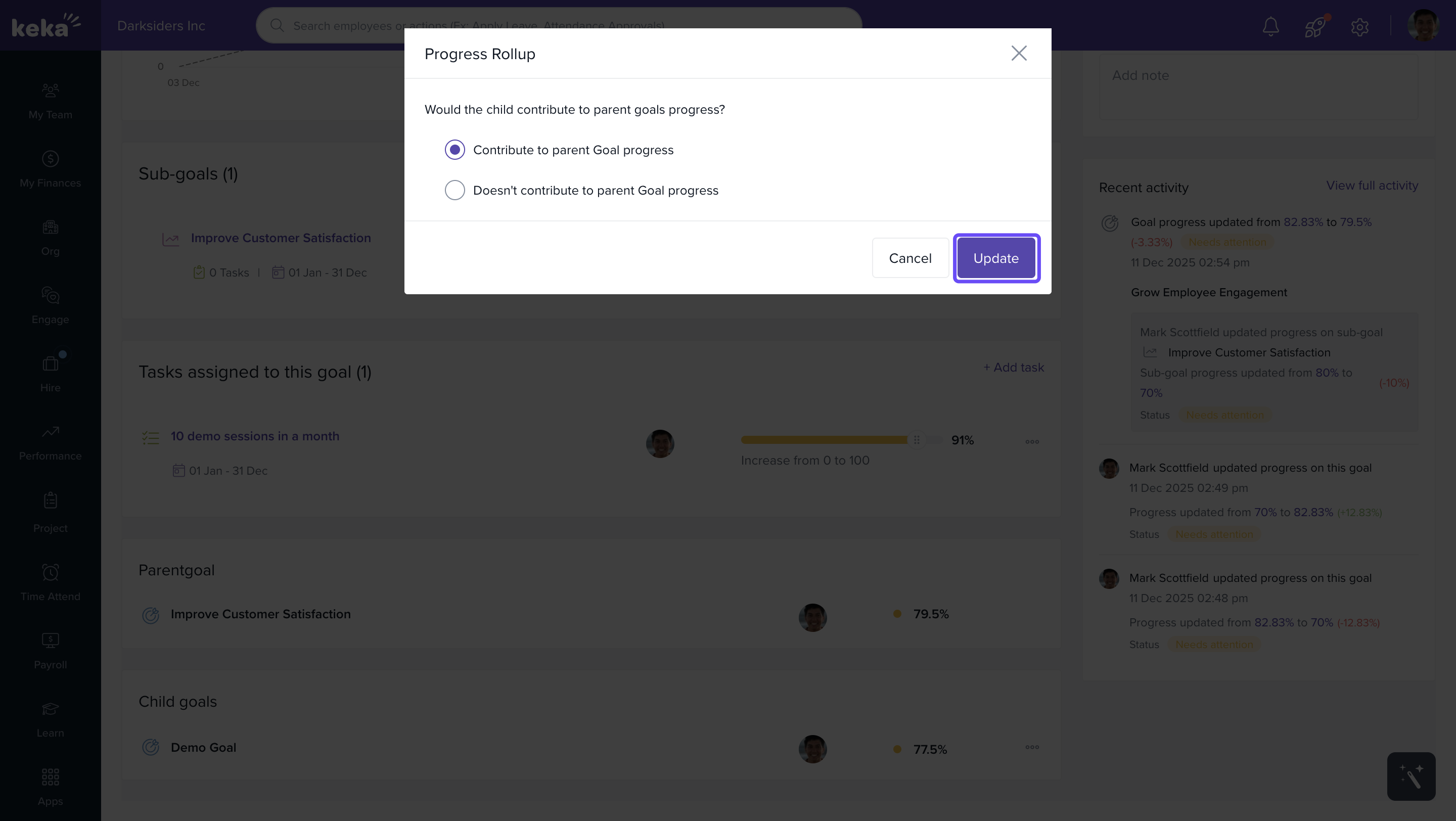 If you choose to contribute, the key result’s progress will reflect in the overall objective’s progress.