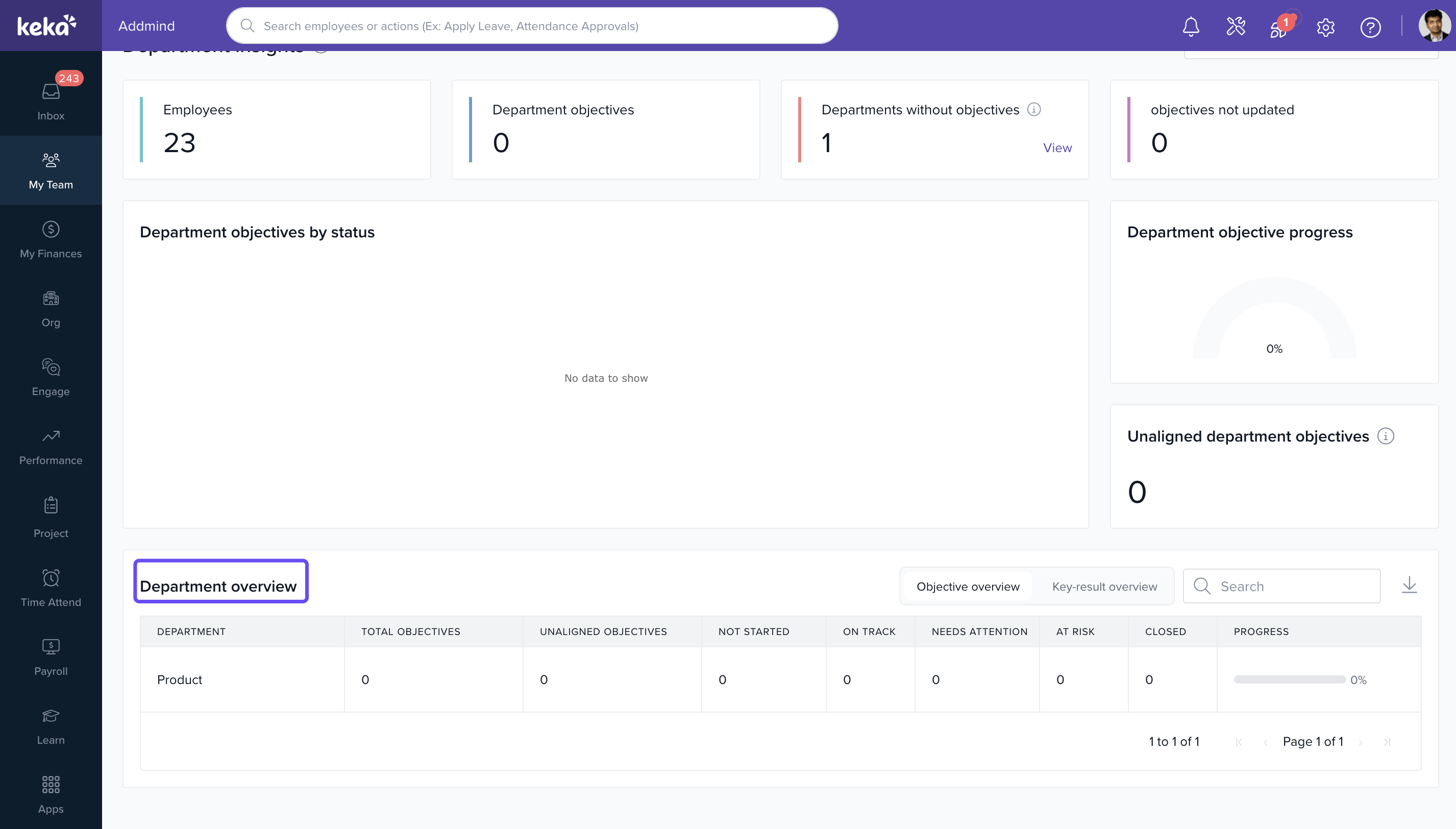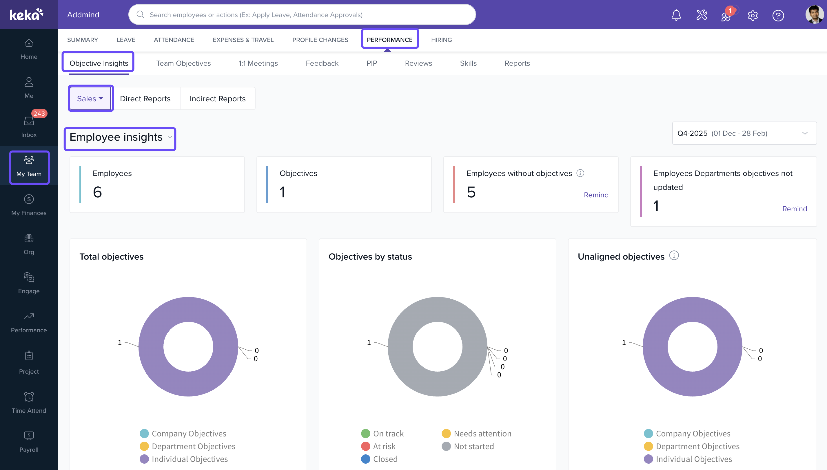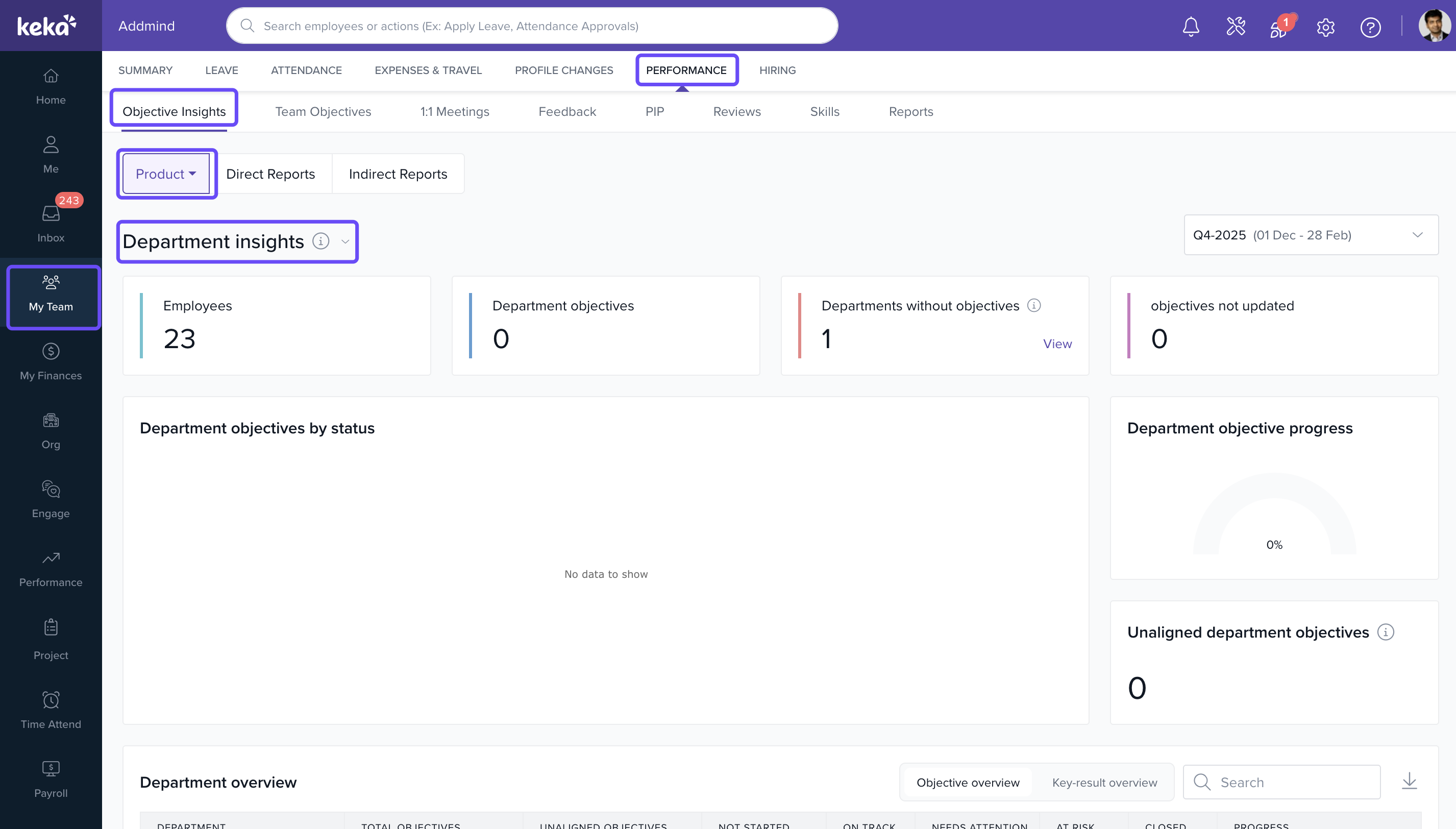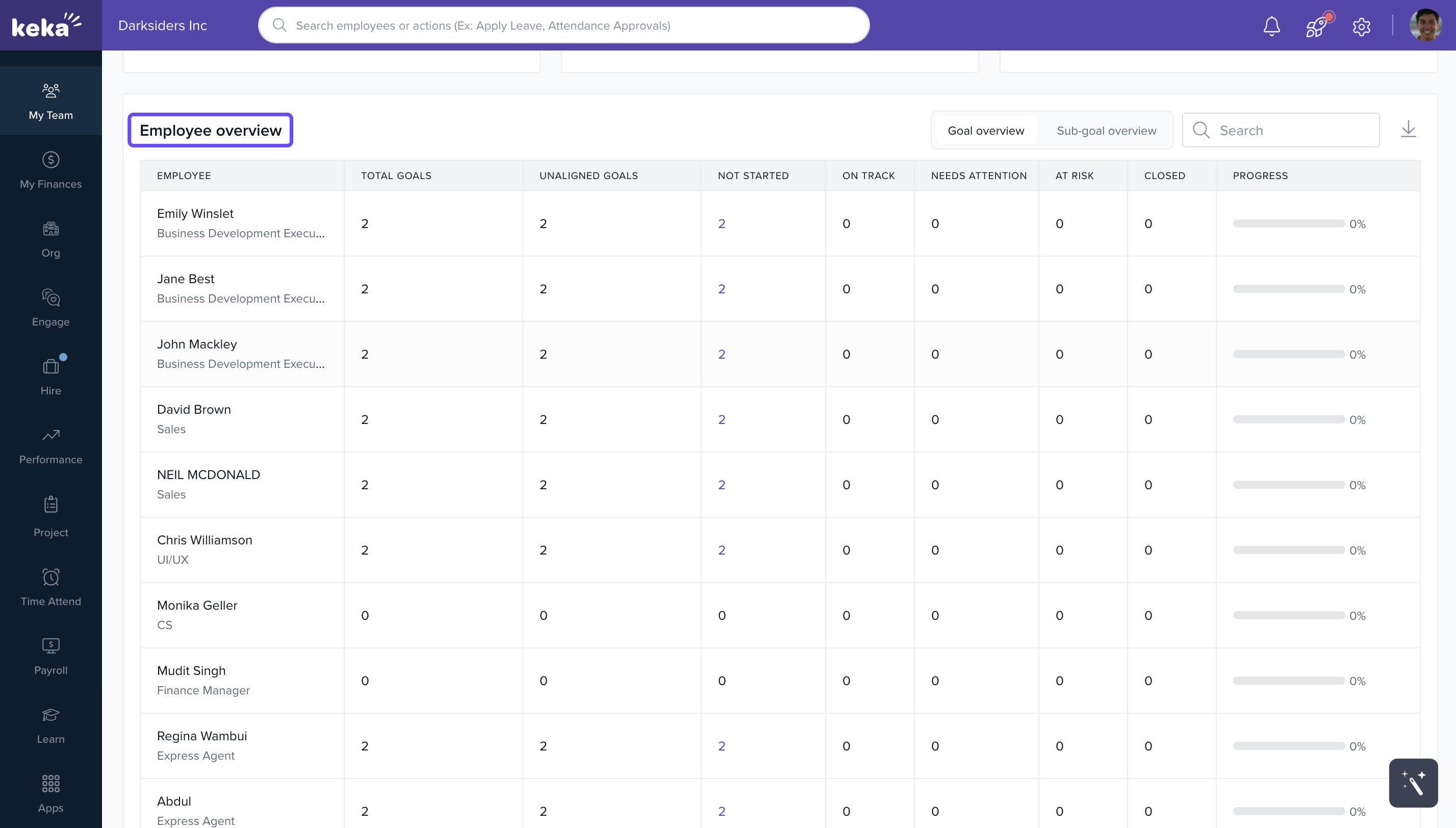 Keka’s Goal Insights feature equips Department Heads and Managers with a powerful, real-time view of how teams and individuals are progressing on goals. It brings together goal data, progress tracking, alignment indicators, and actionable insights—all in one place.