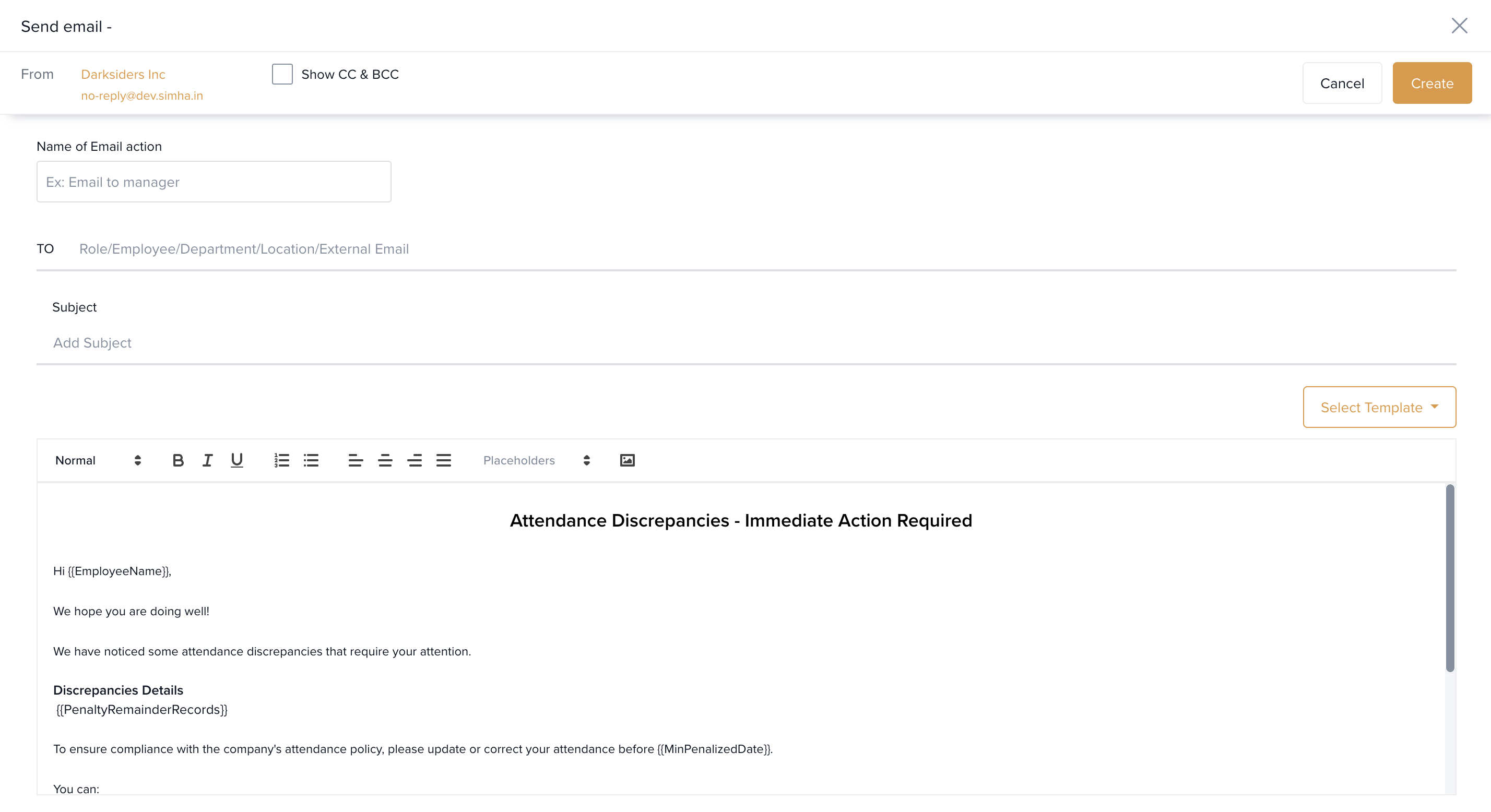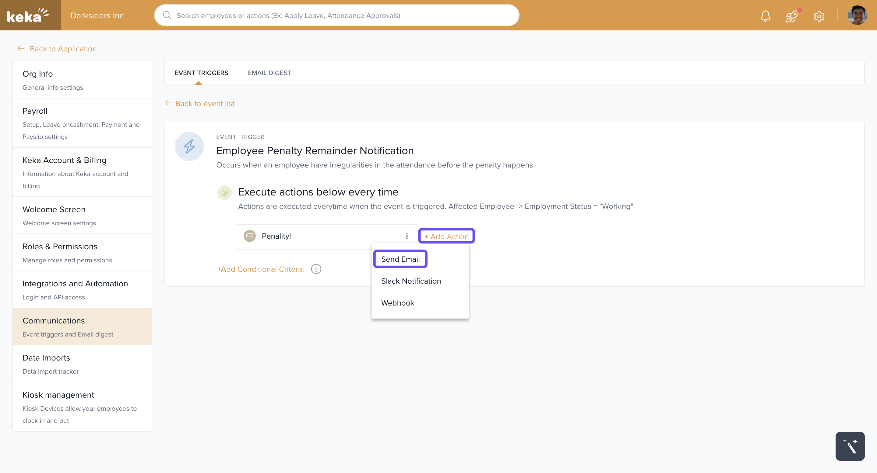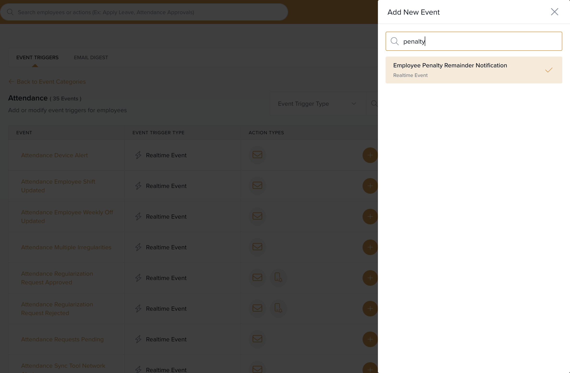 Select Employee Penalty Reminder Notification from the event list.