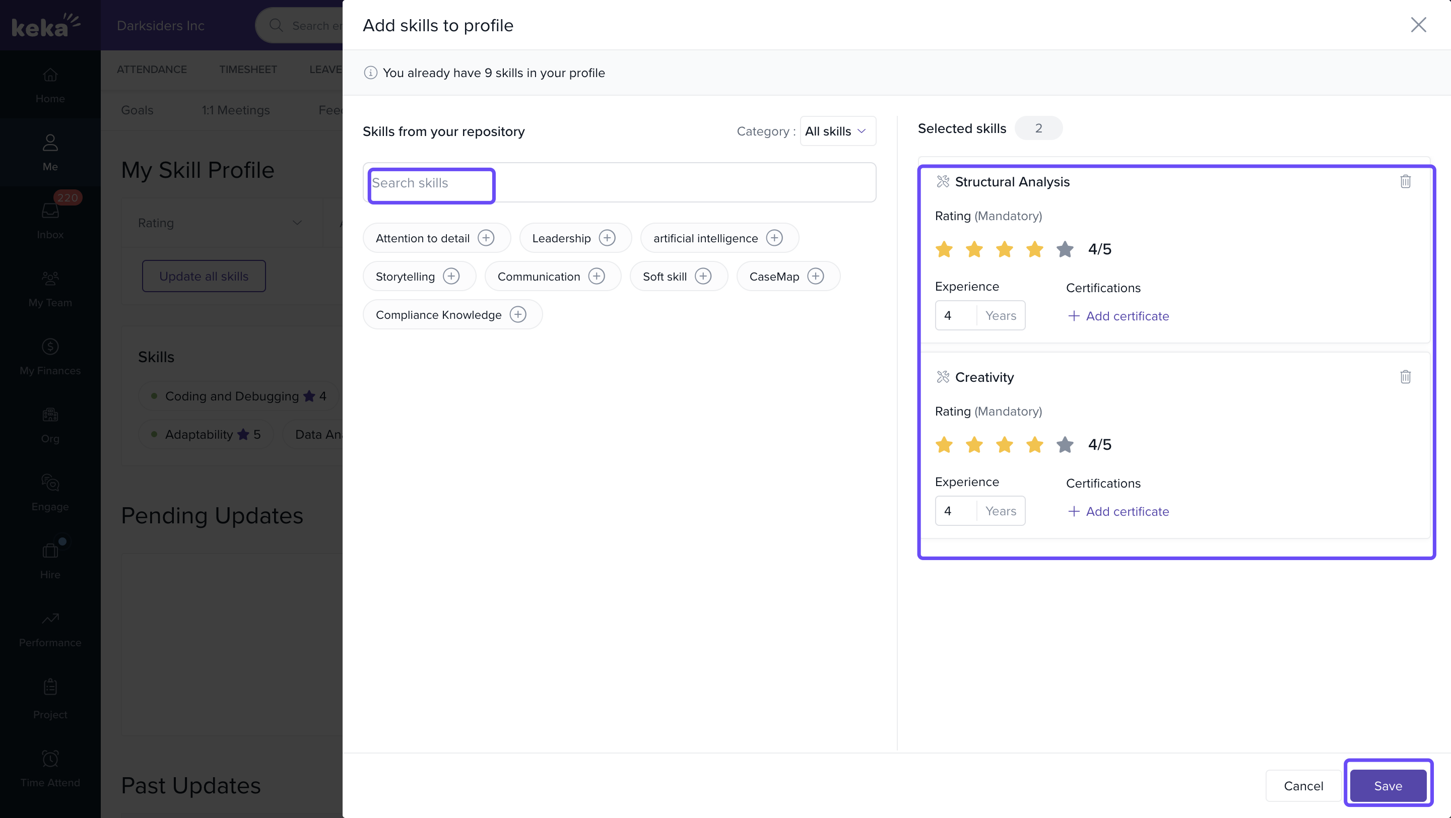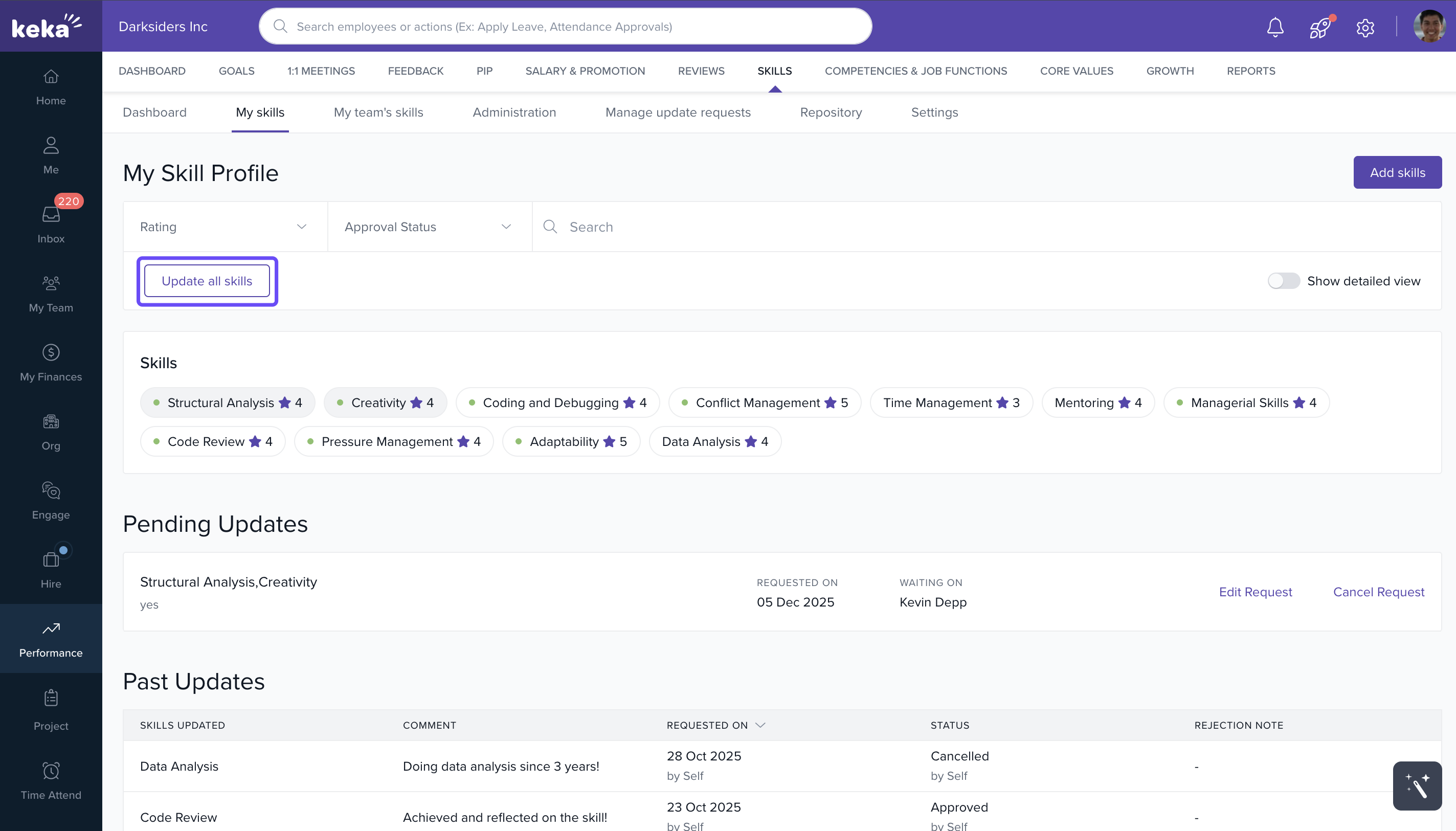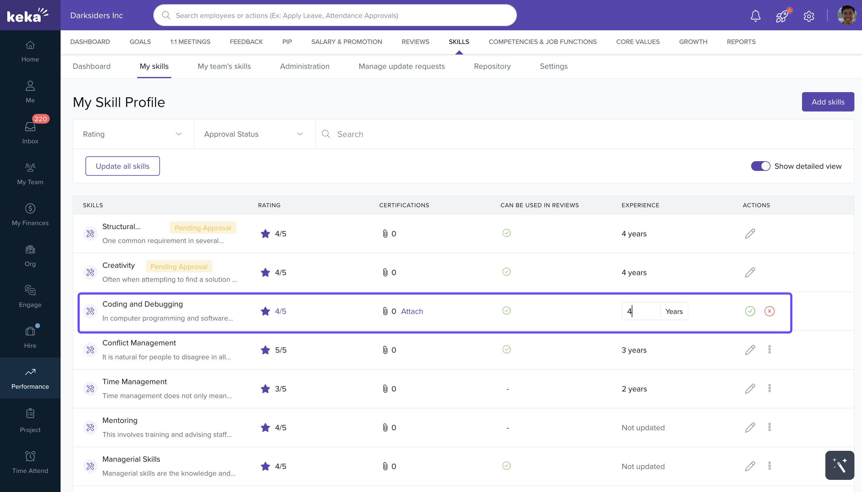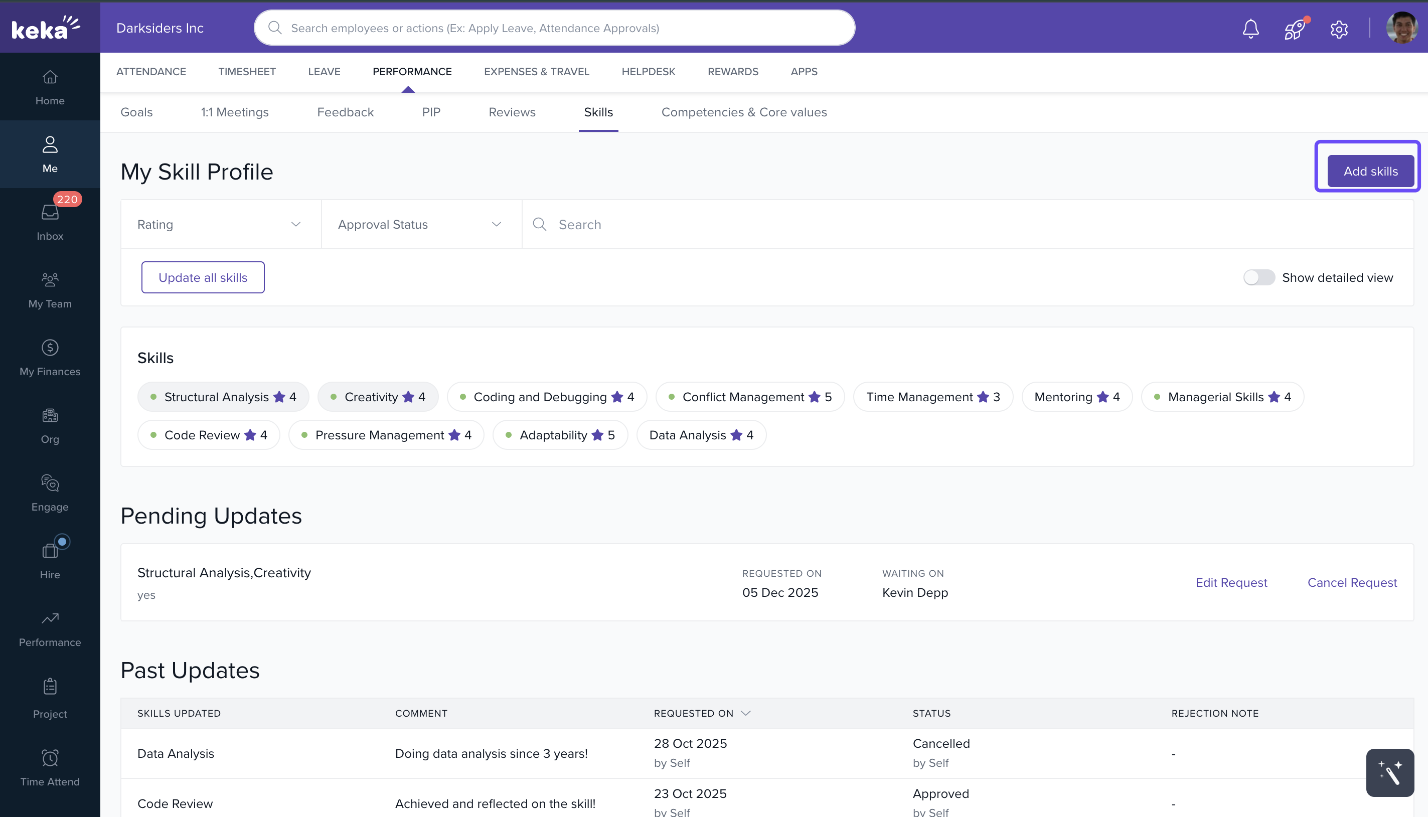 This article describes how you, as an employee, can add, edit, and bulk update skills in your Keka profile.