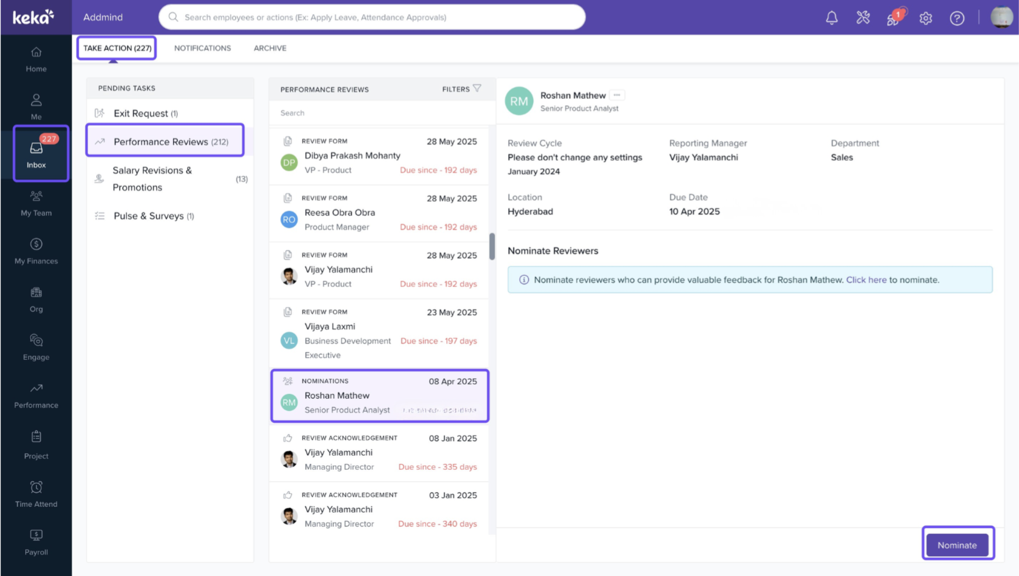 - Navigate to the “Inbox” or “Performance Reviews” section of your HRMS or performance management system.