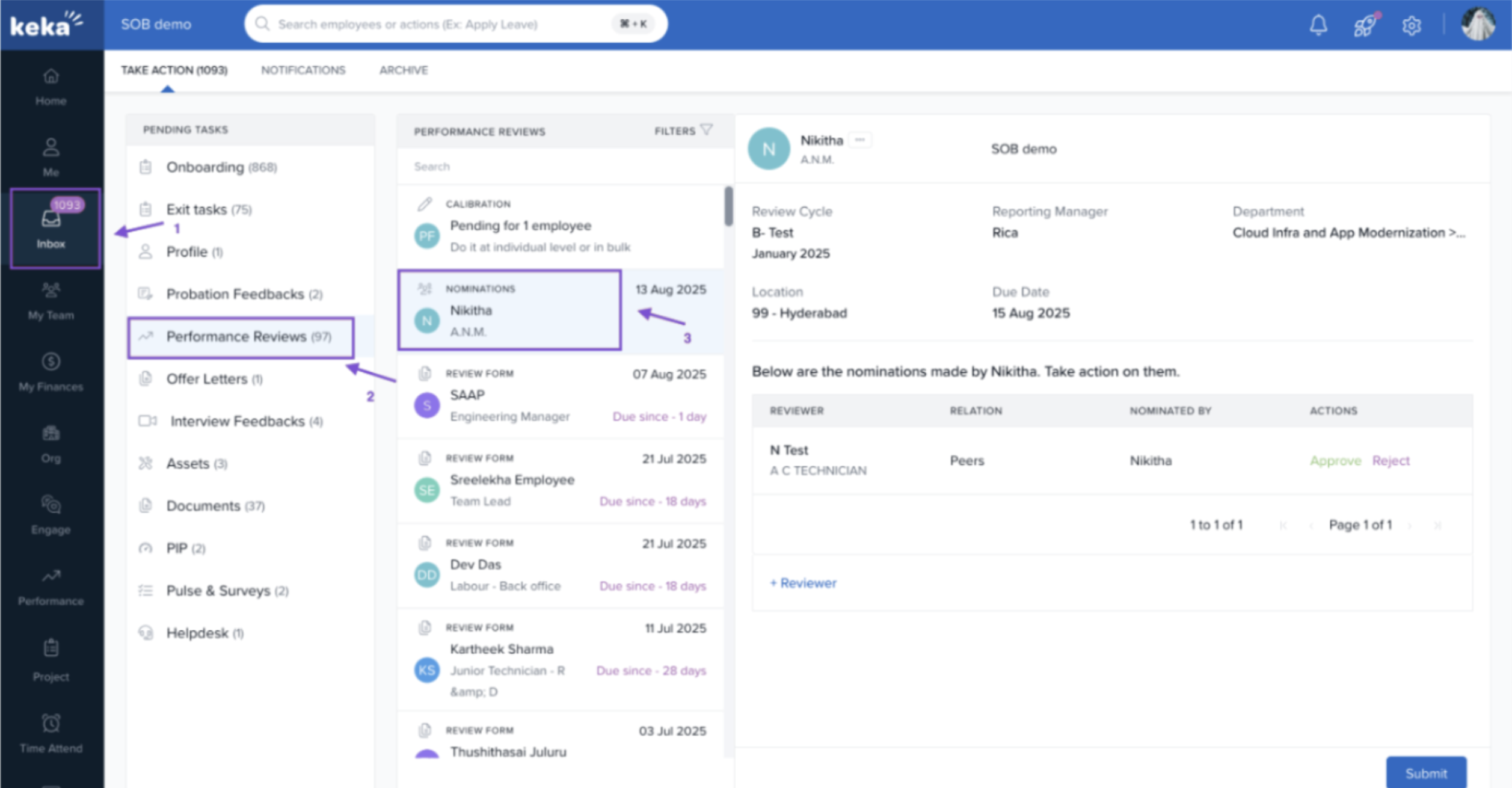 When an employee nominates a peer for their review, the manager plays a key role in approving or rejecting the request. If you need to reject a peer nomination, Keka makes the process quick and straightforward. Here’s a step-by-step guide: