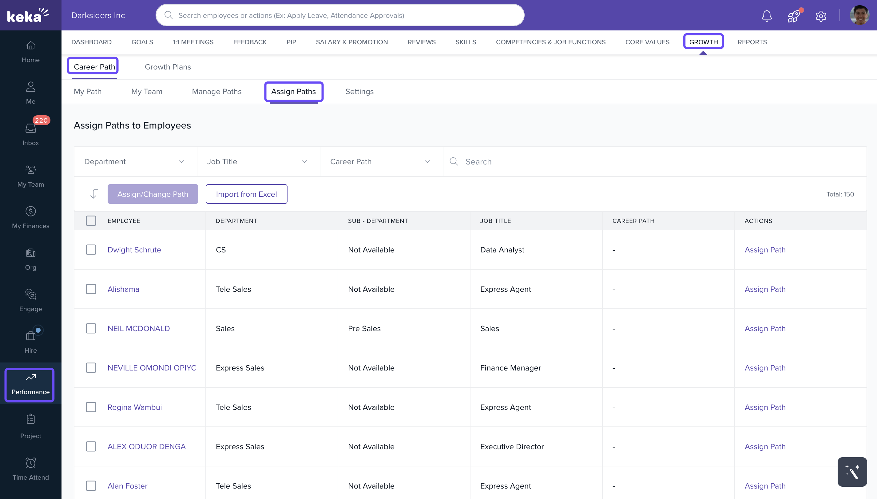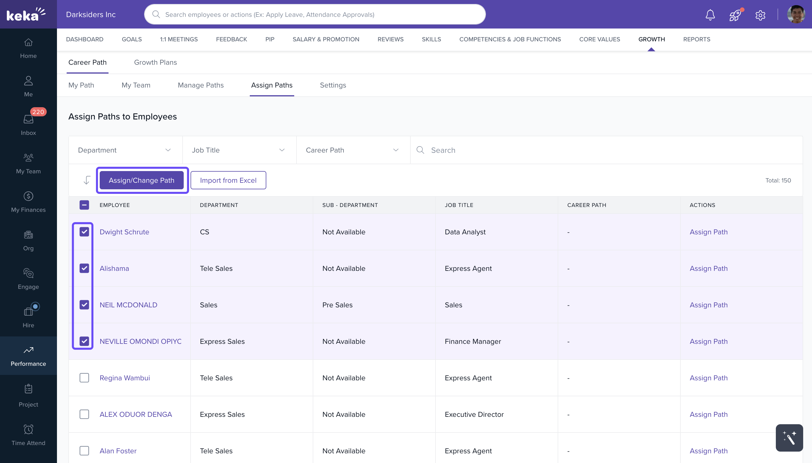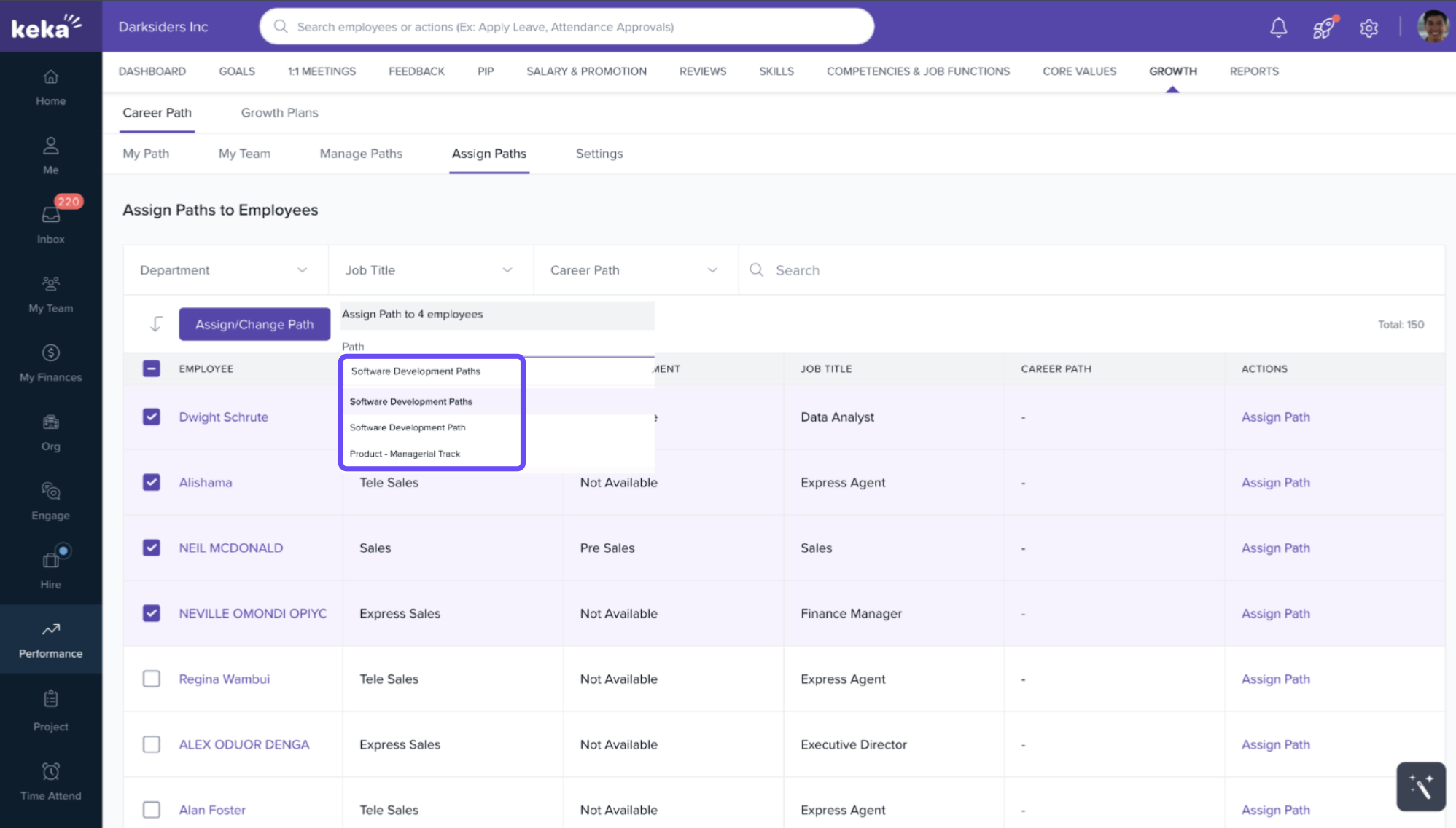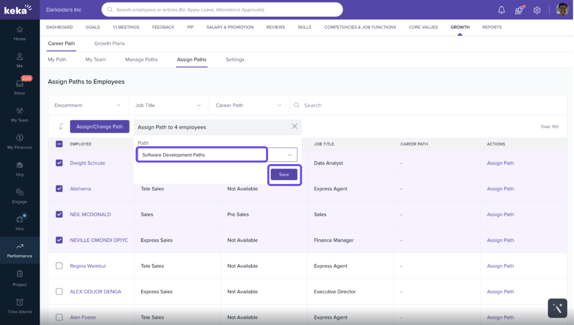A window will open displaying all employees along with their current career paths.