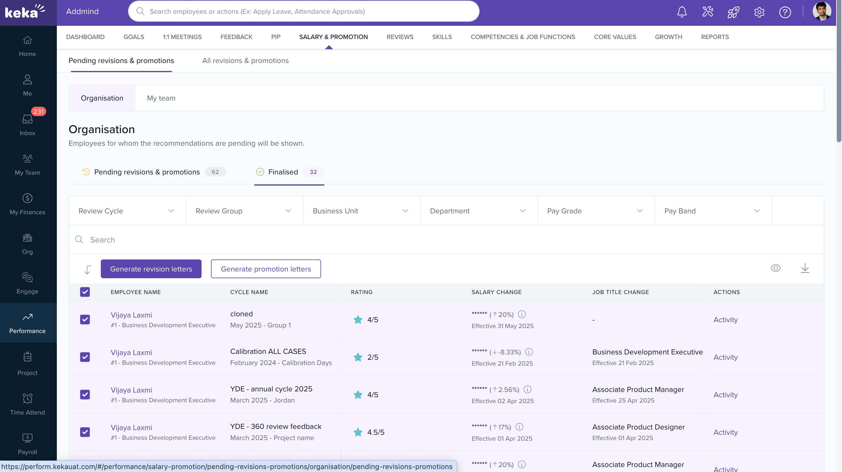 - Letter generation for salary revisions and promotions after finalisation.