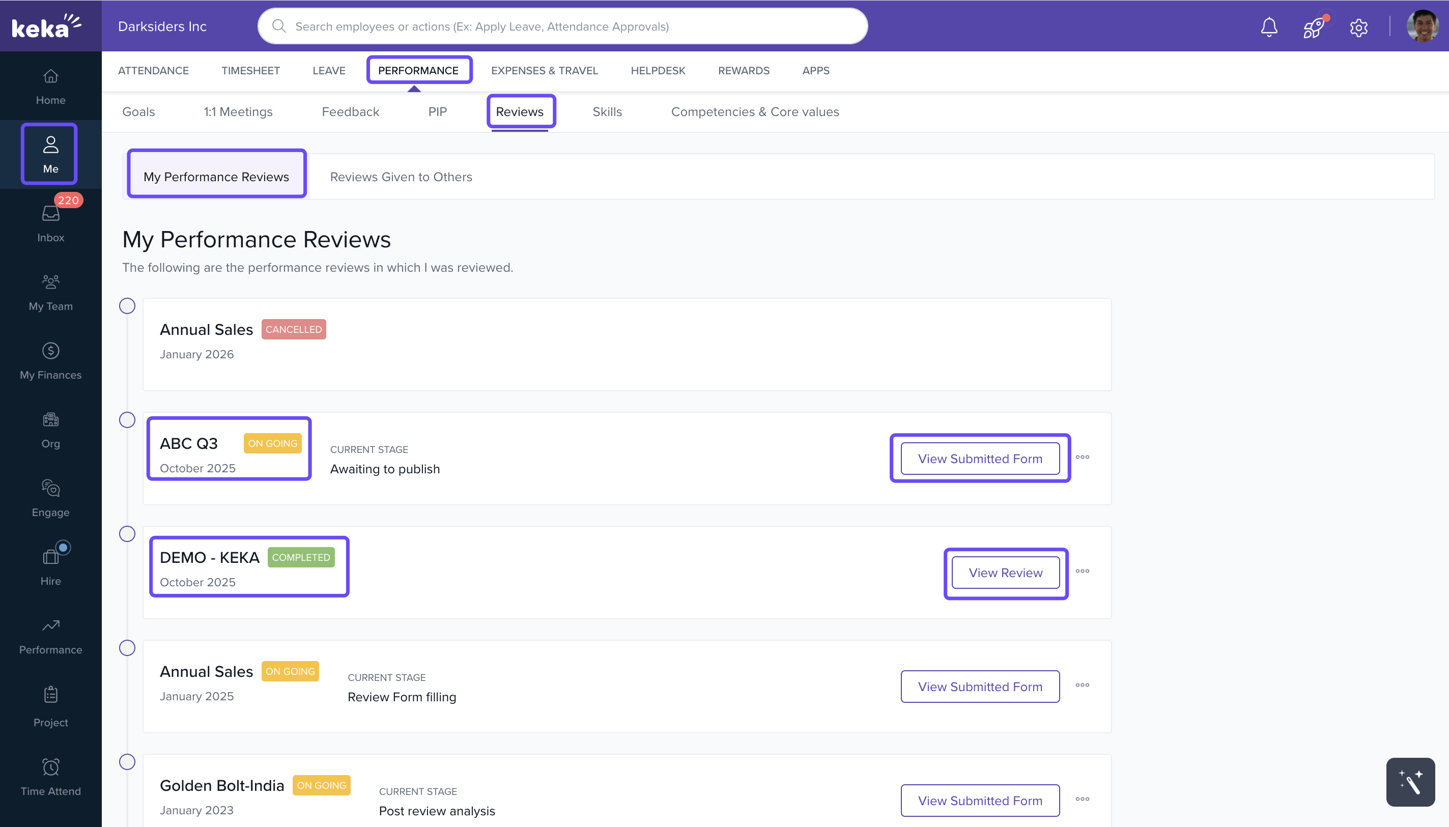 Under My Performance Reviews, you’ll see your Review Cycle History.