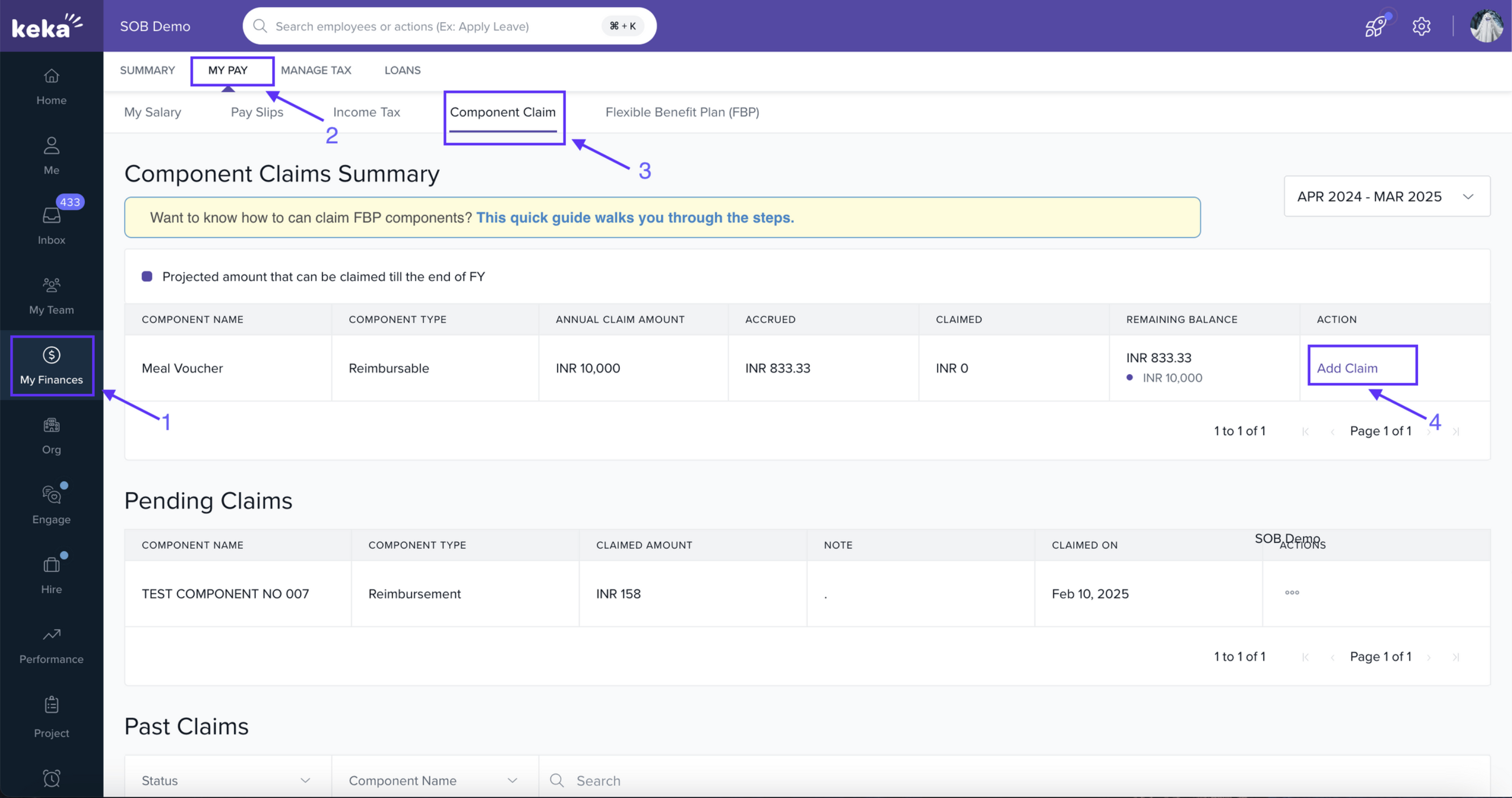 Go to My Finances in Keka.