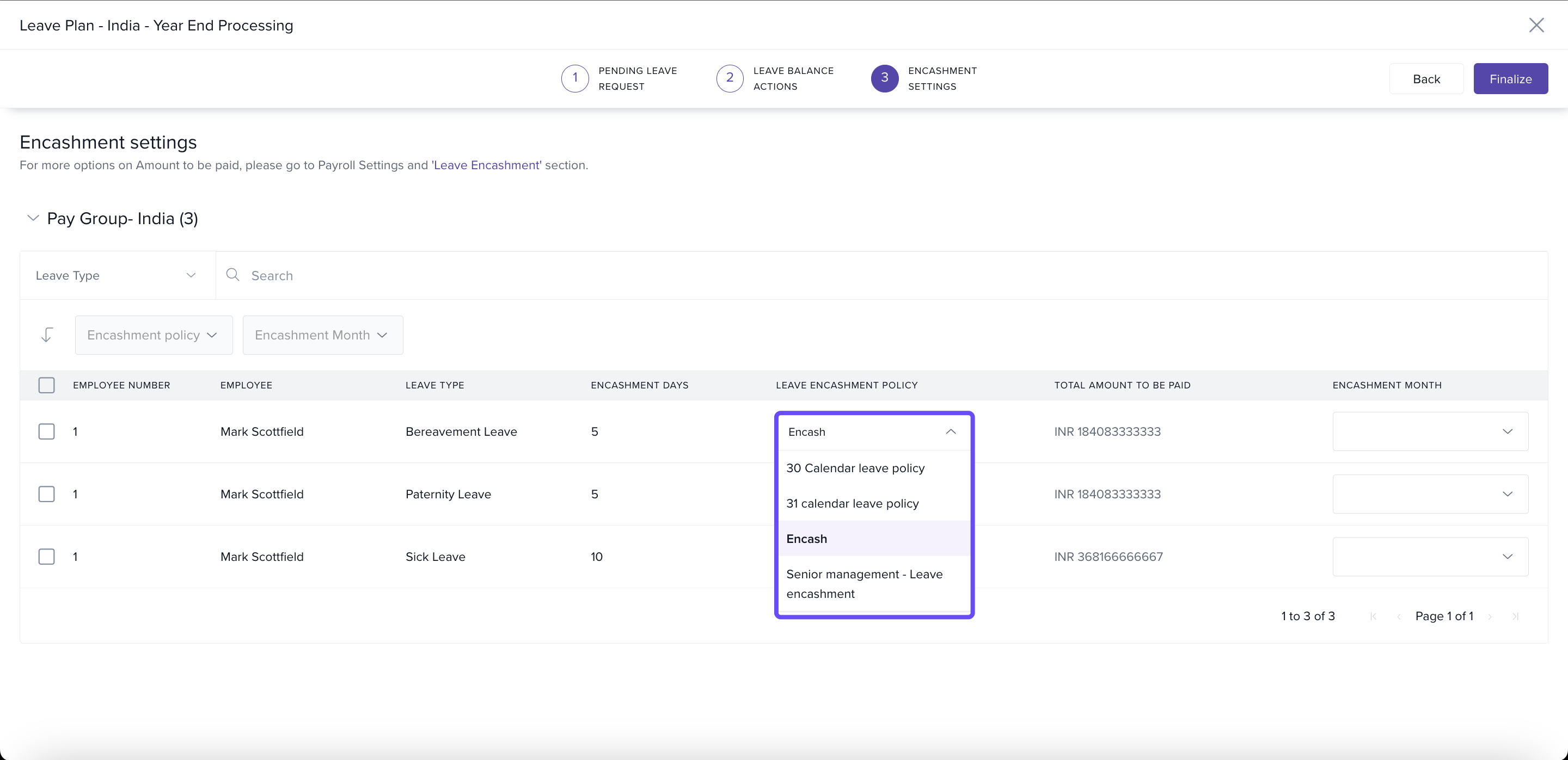 Step 3 — Select Encashment Policy: