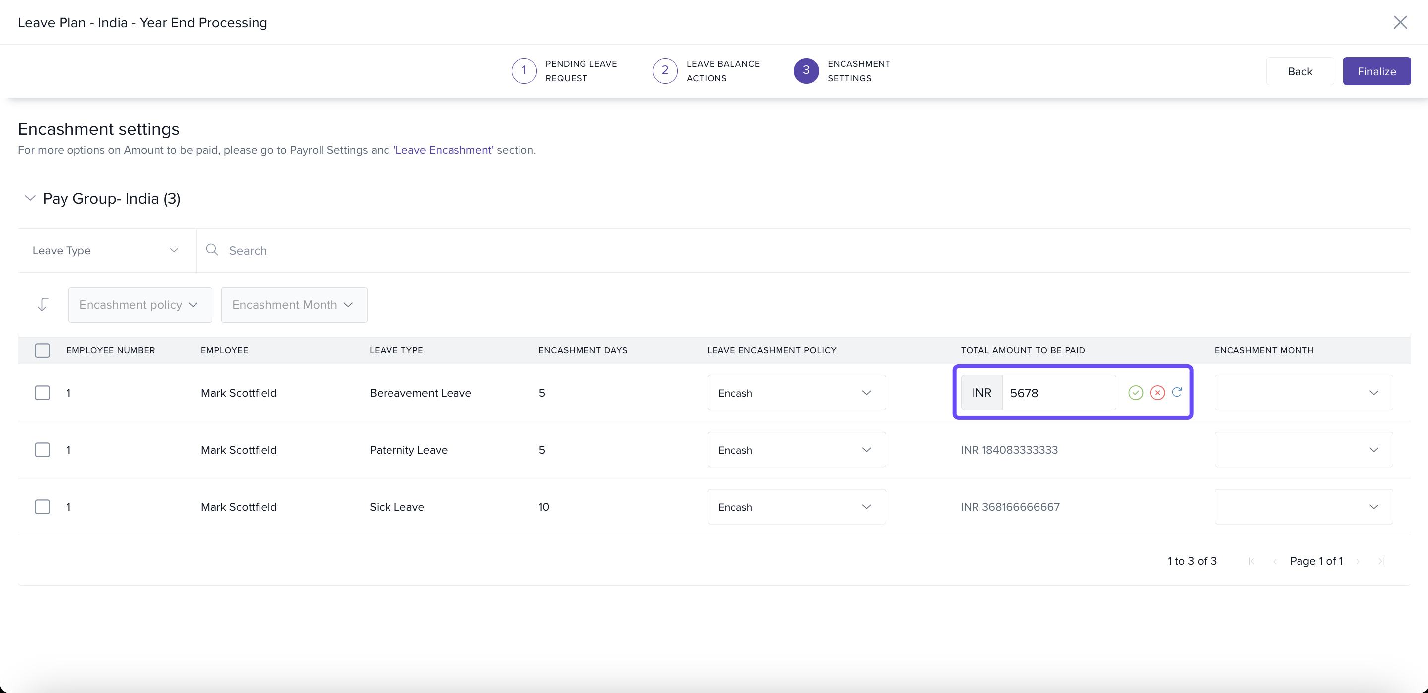 Step 2 — Adjust Leave Encashment: