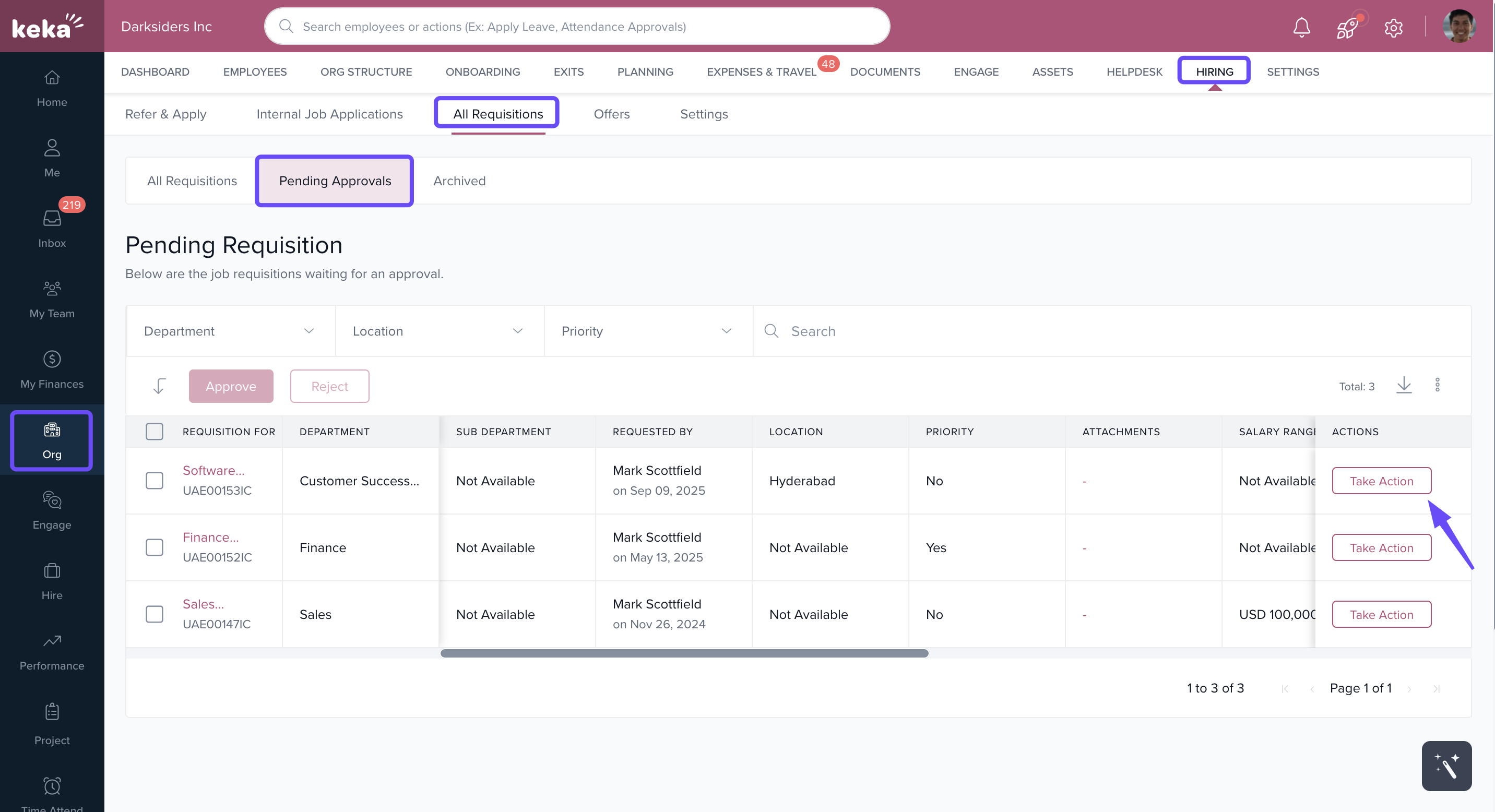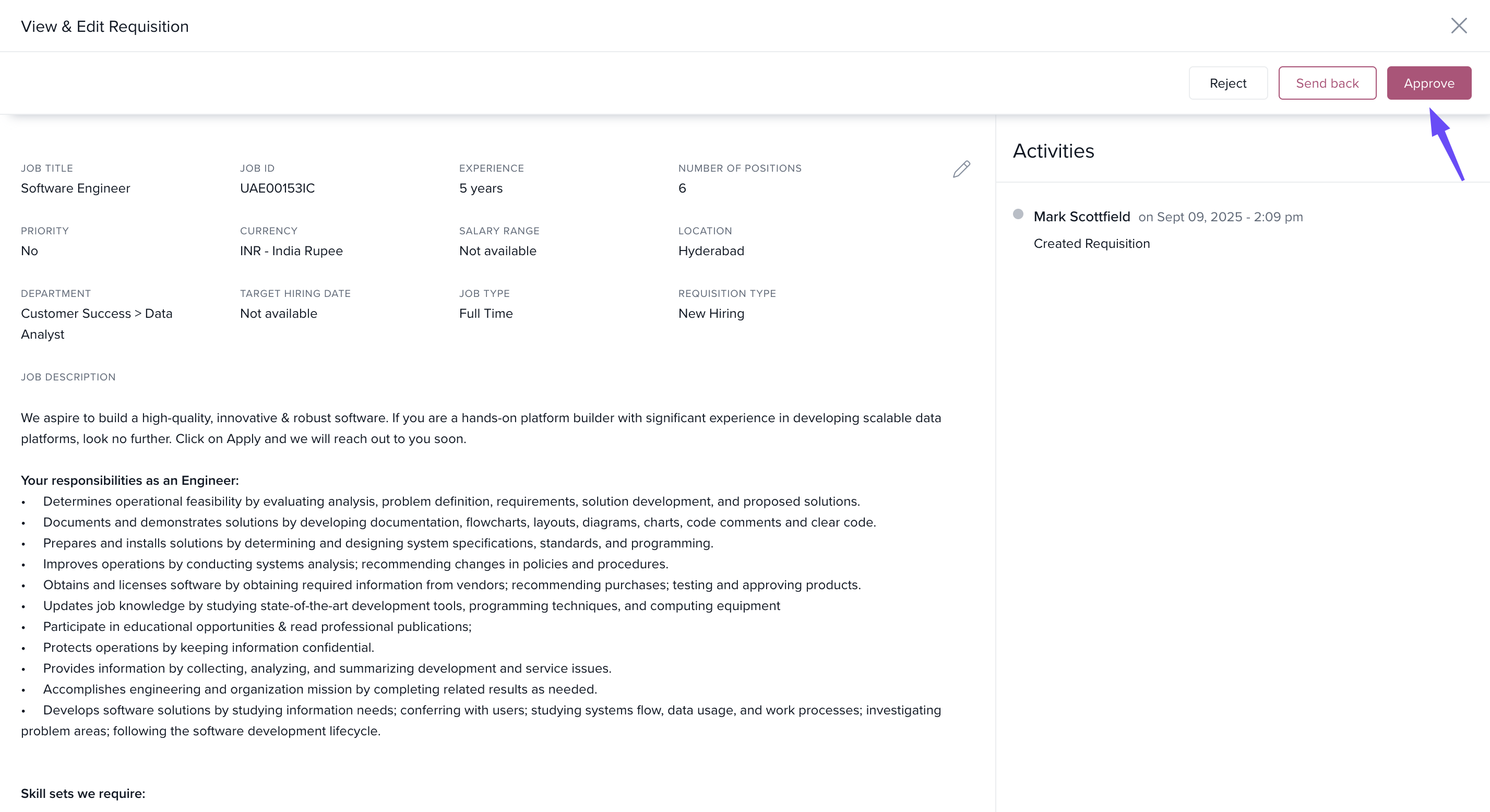 You can now add comments when approving a requisition in Keka. This helps you suggest minor updates without sending the requisition back for rework and re-approval.