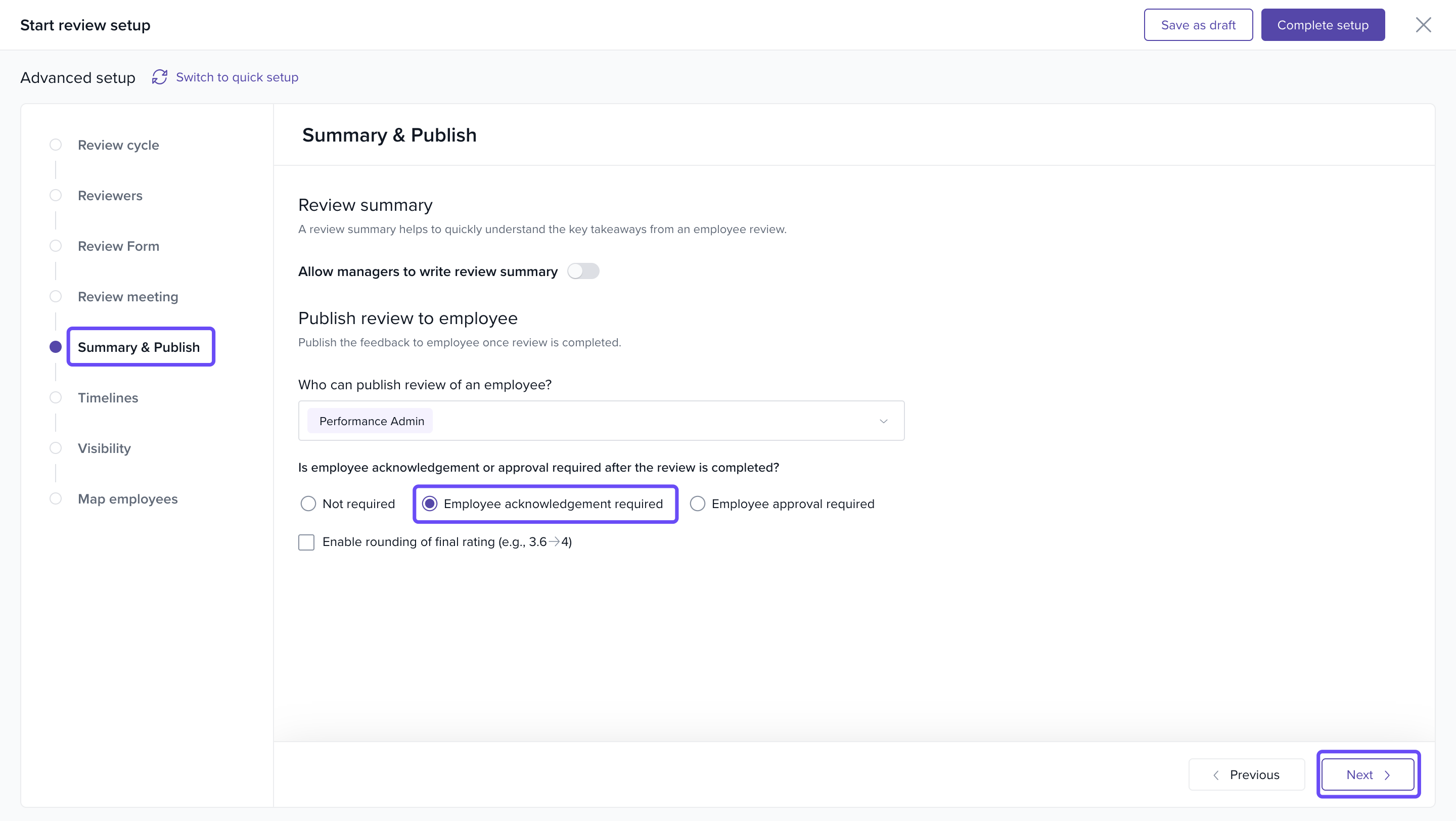 To learn more, refer to the article on how to enable or disable employee acknowledgement after the review is released.