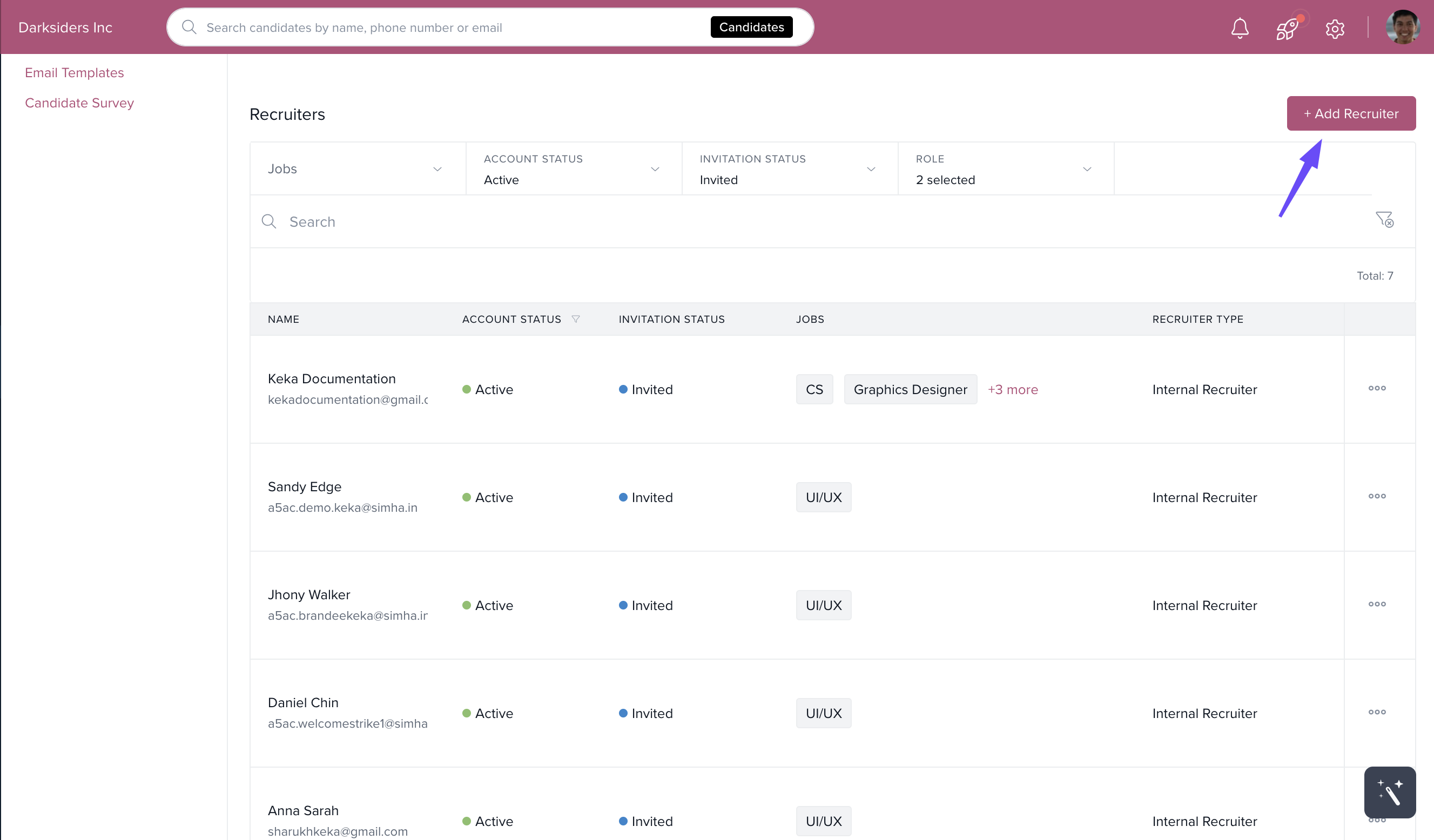 Scroll down on the pages for paid users to locate the "Add Recruiter" option.