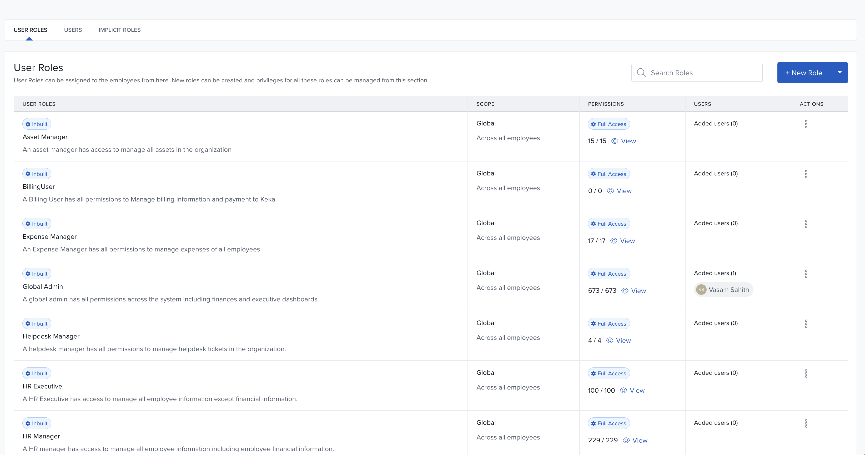 Anyone assigned to a role in Keka can now view their assigned roles, the scopes applied to those roles, the actions they’re allowed to perform, and any restricted actions—along with clear explanations for why access is blocked. This empowers users to understand their permissions independently, reducing confusion and the need to contact support.