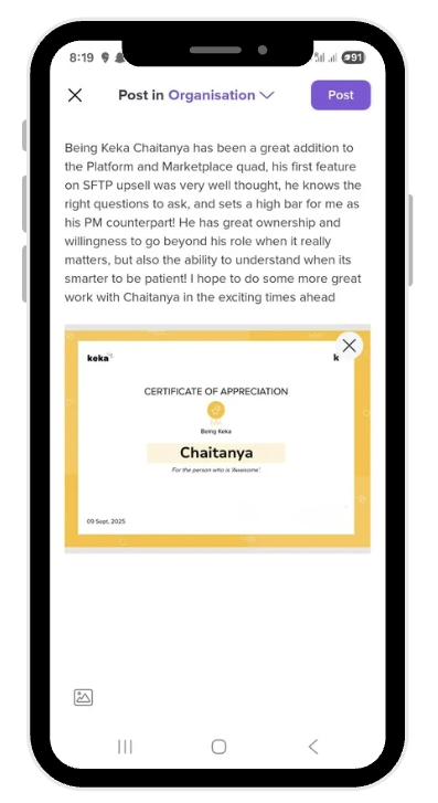 Keka makes it easy to interact with posts and comments: