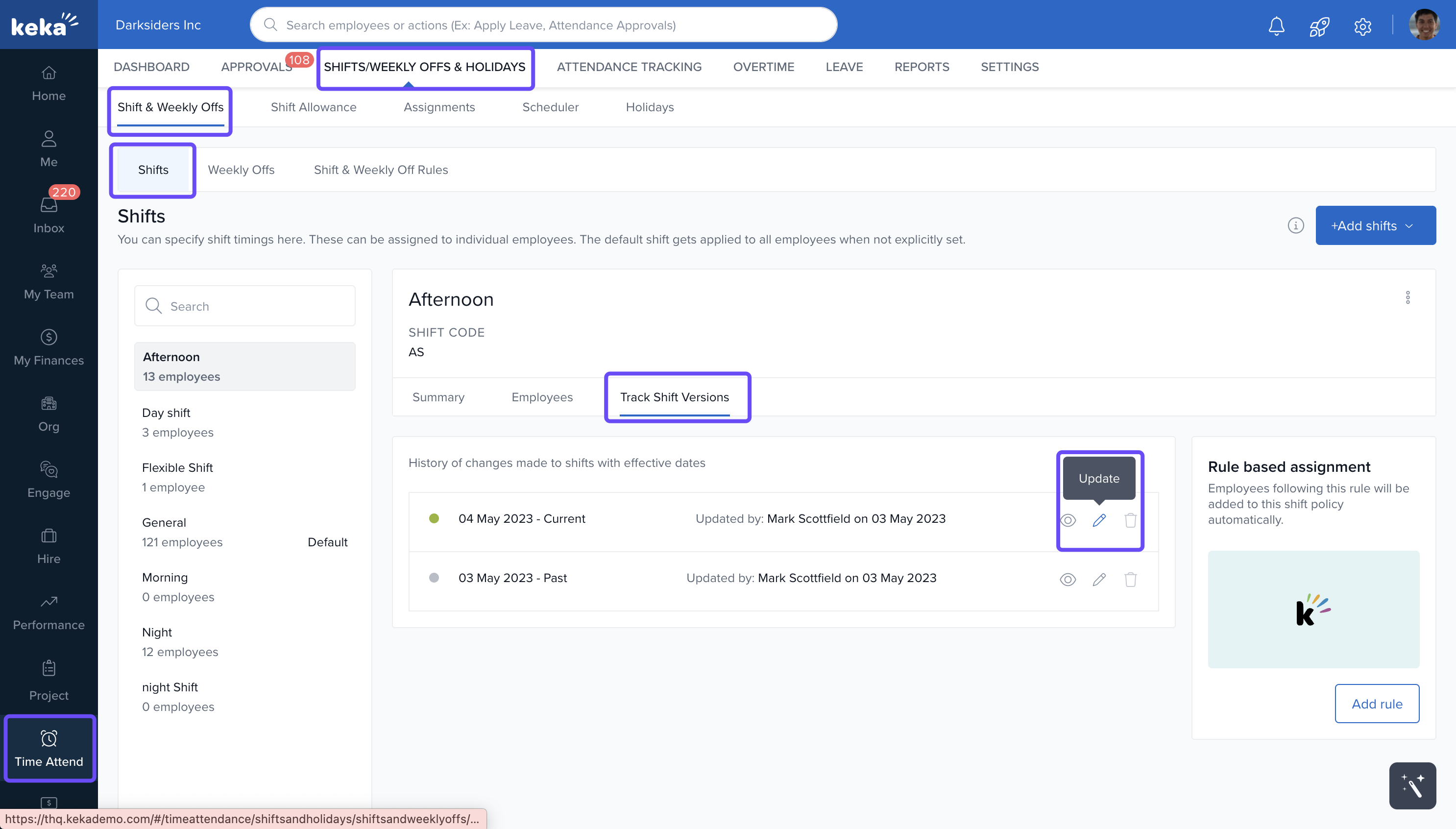 Under Shift & Weekly Offs, stay on the Shifts tab.