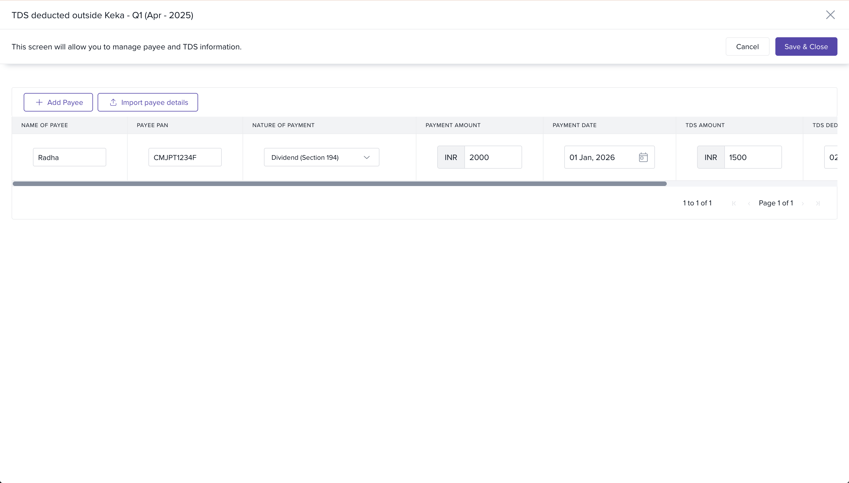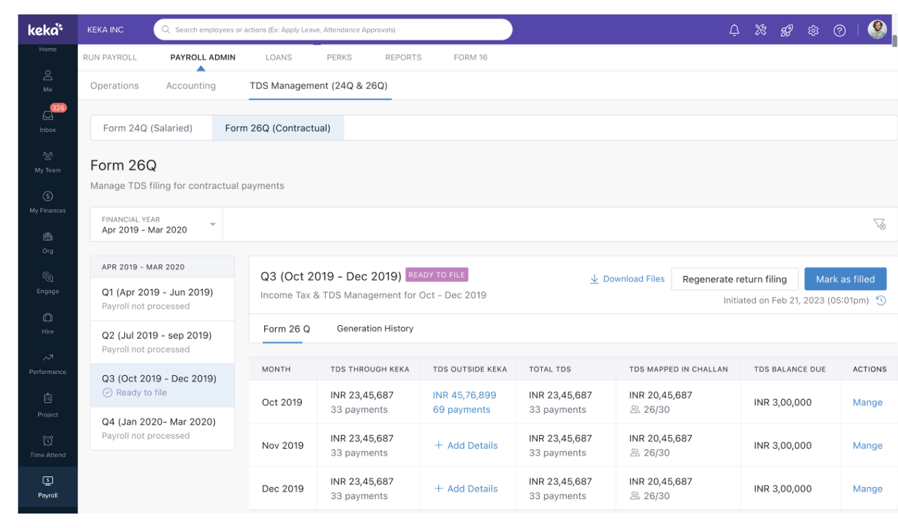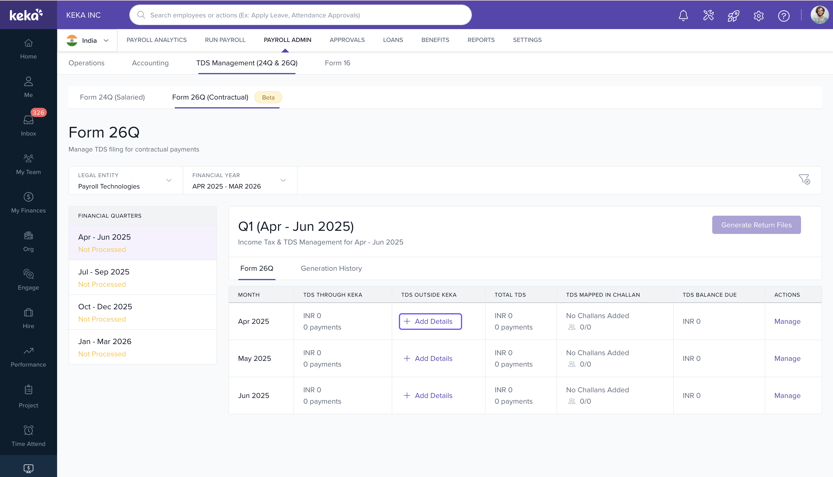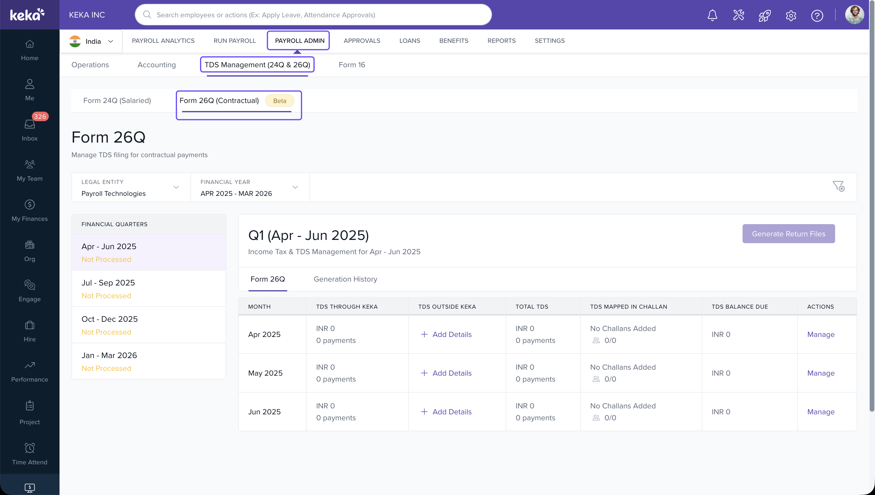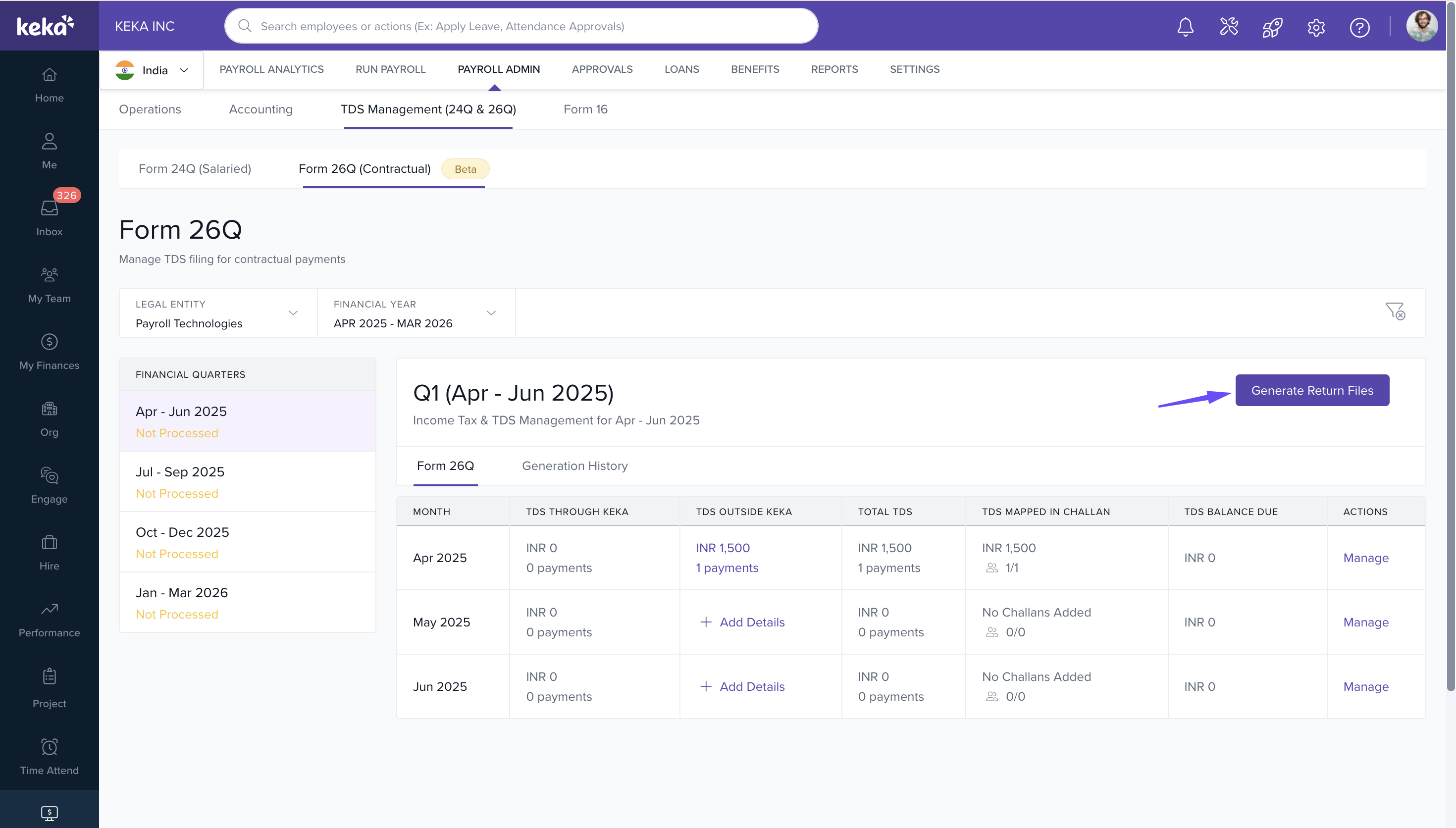 Keka now lets you manage this process end-to-end — right from tracking deductions to generating ready-to-submit Form 26Q files — without needing external tools.