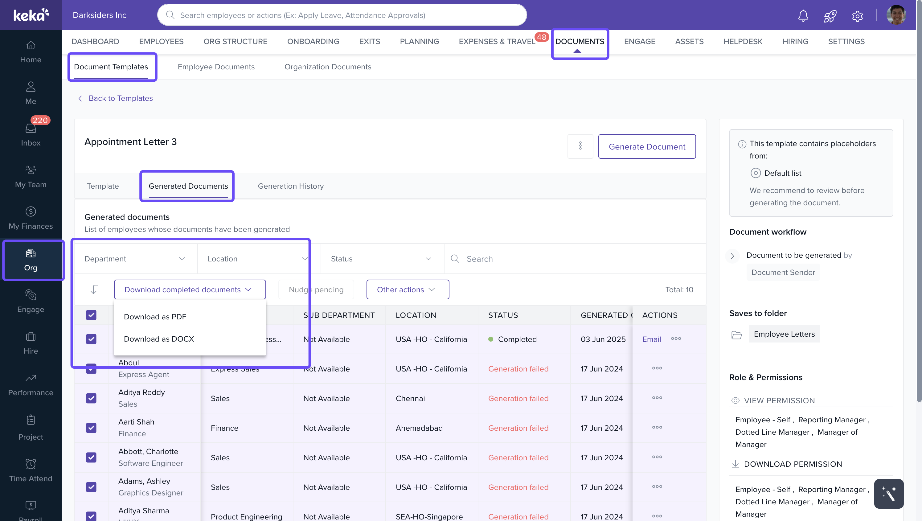 Tip: Use bulk downloads to quickly prepare hard copies for onboarding or employee file management.