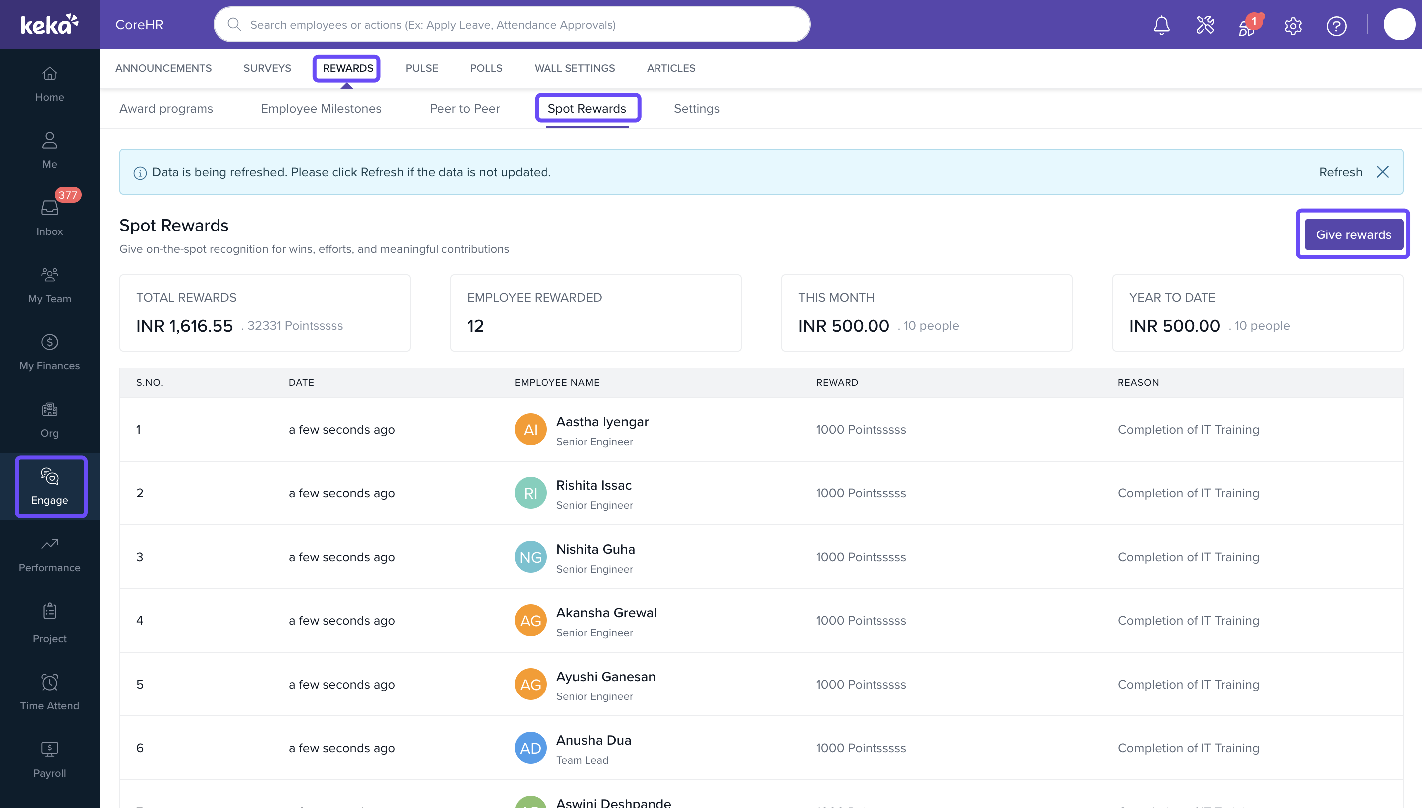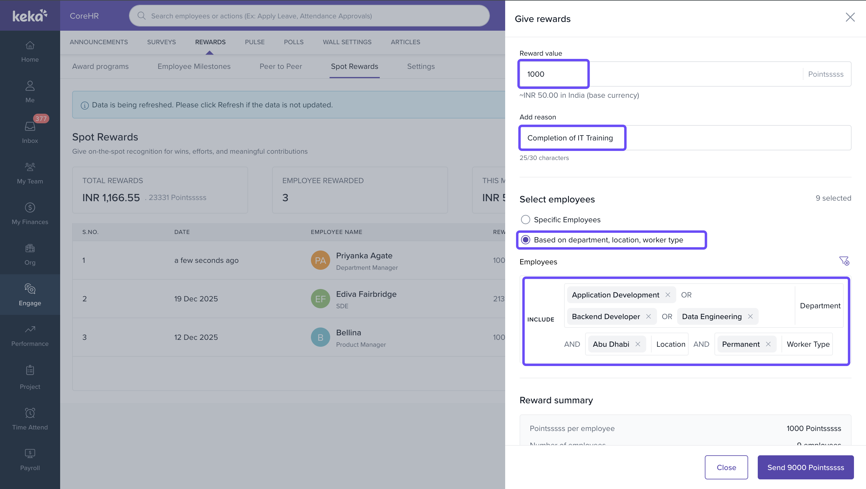 Who this is for: Admins and HR teams managing employee engagement and rewards.Steps to Manually Send Spot Reward Points to Employees