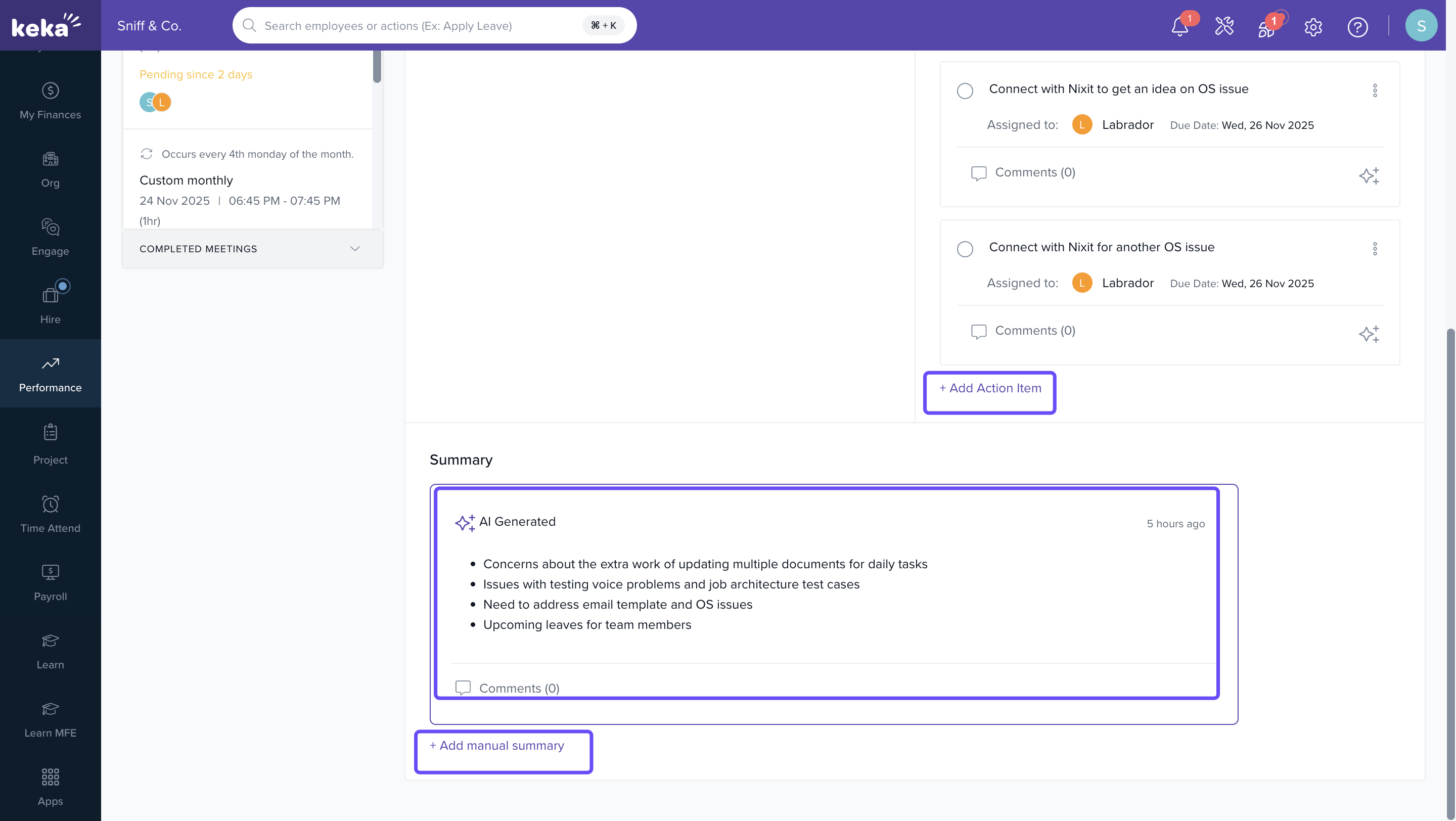 Until now, capturing and managing 1:1 meeting discussions relied heavily on manual notes. This often led to incomplete records or forgotten tasks.